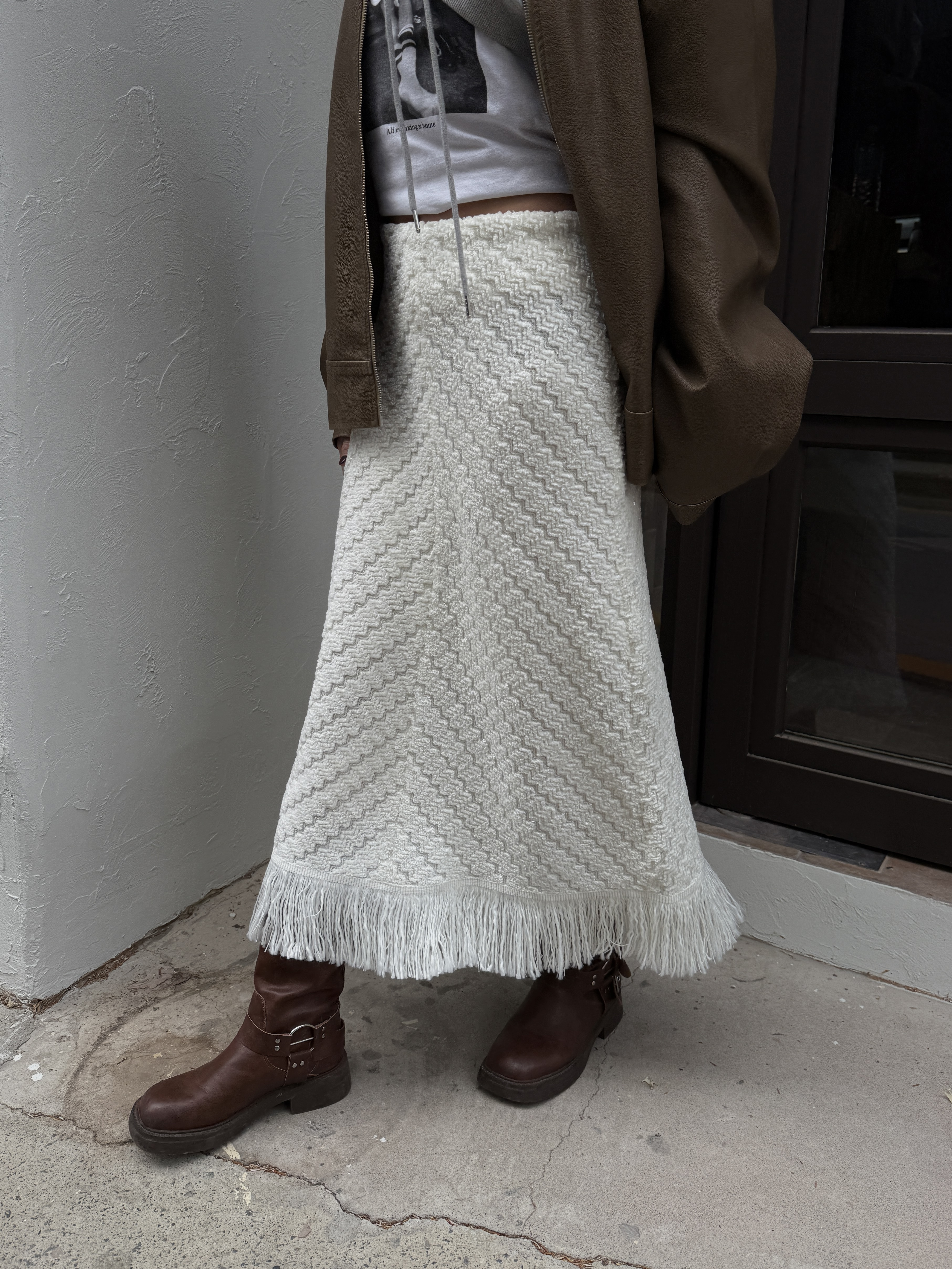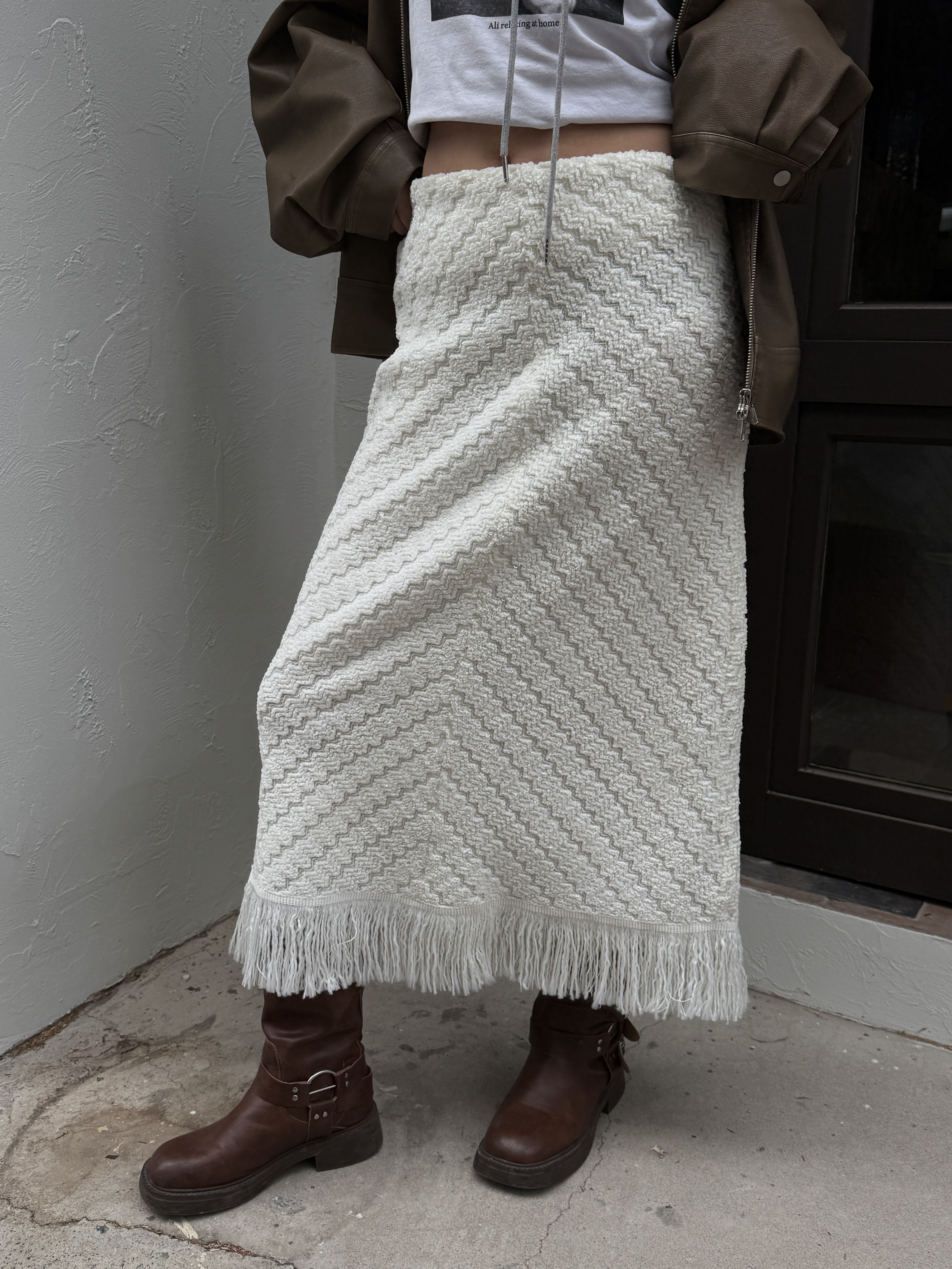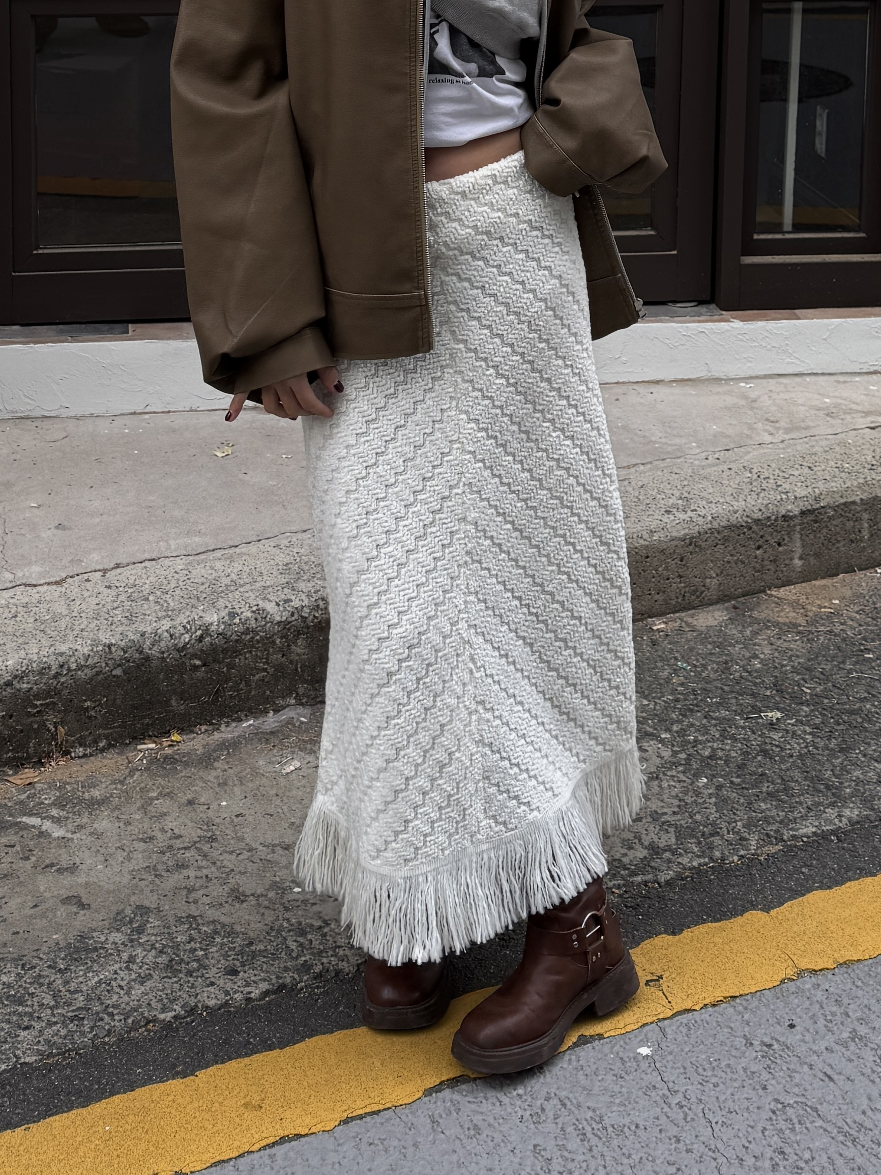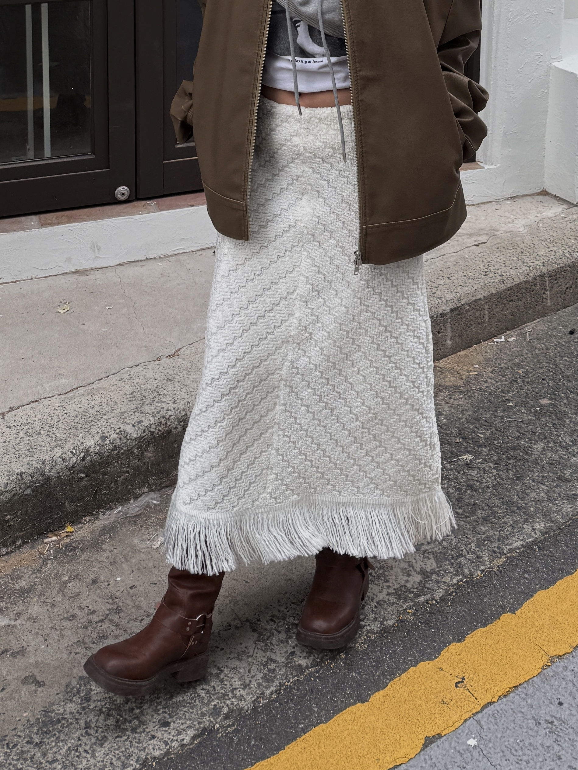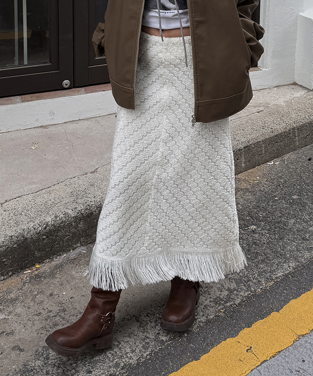 소프트 프린지 니트 롱스커트