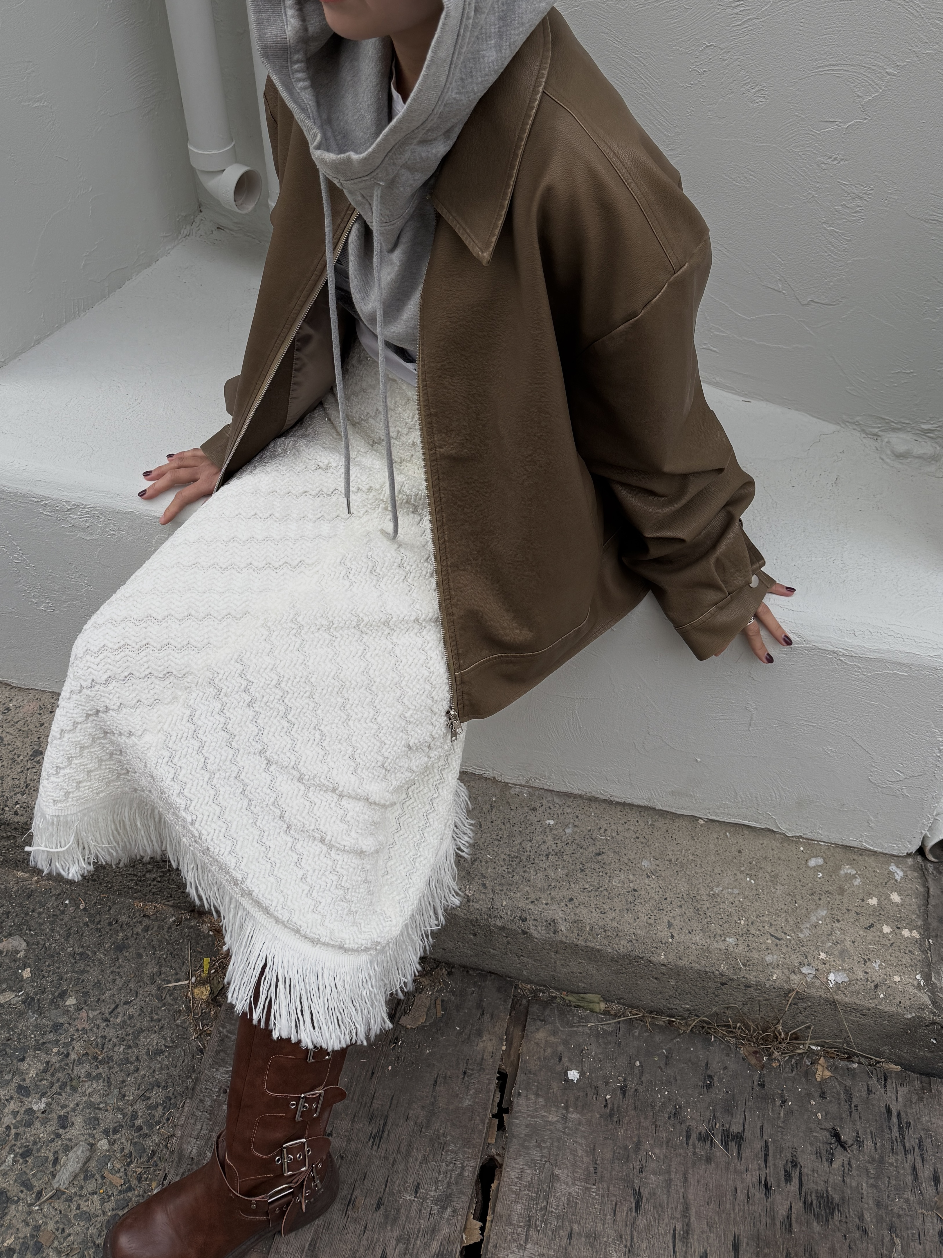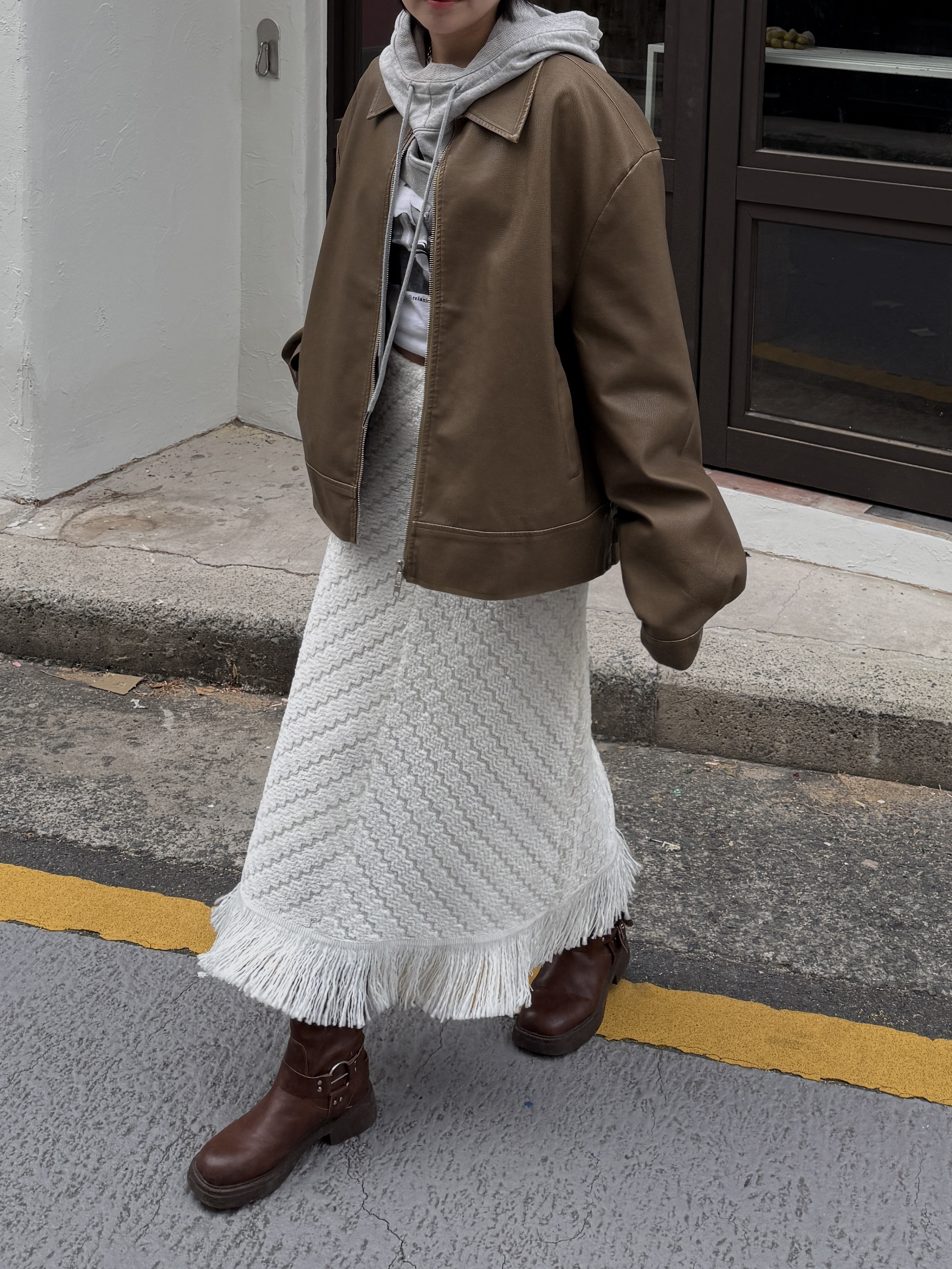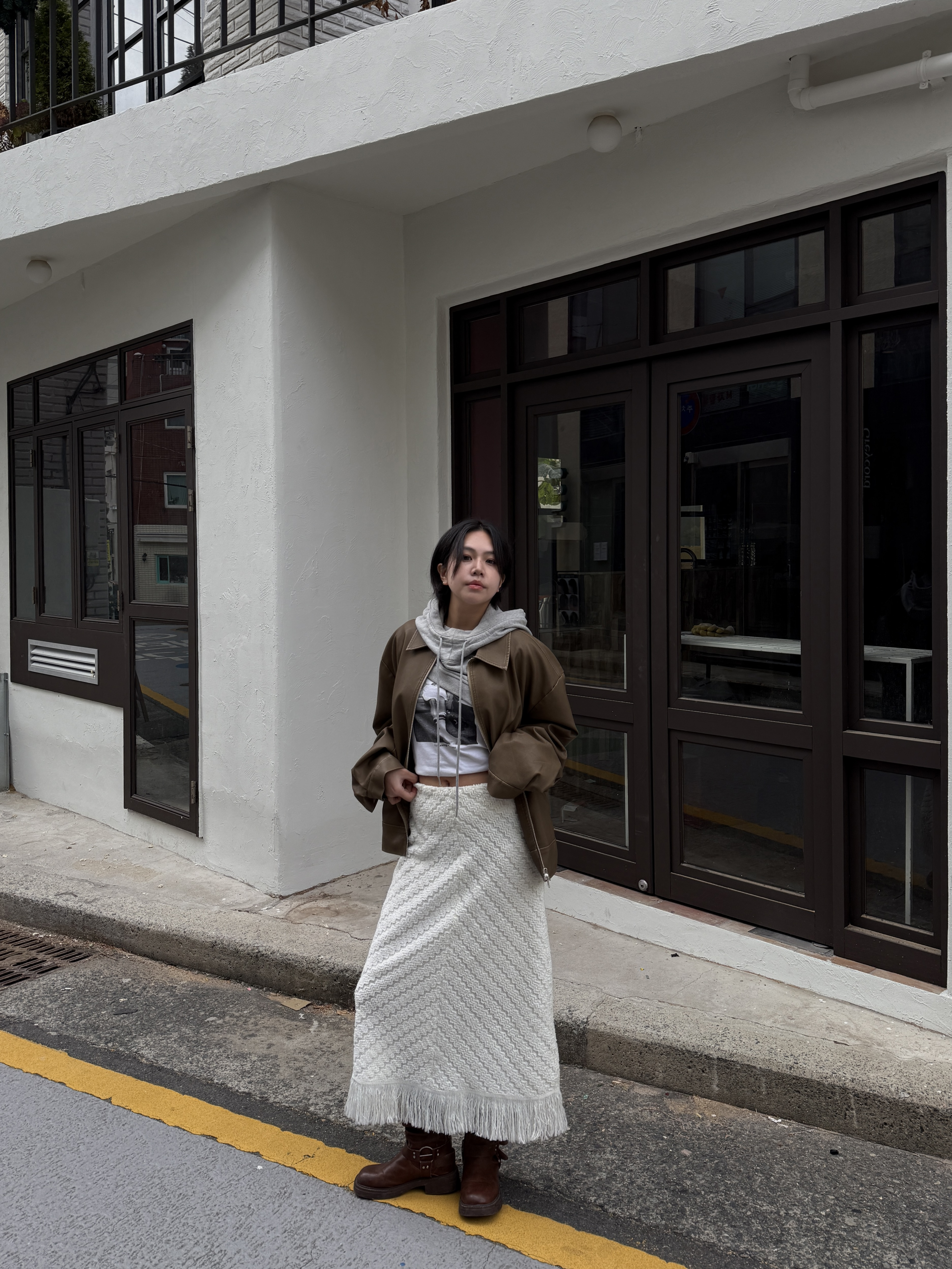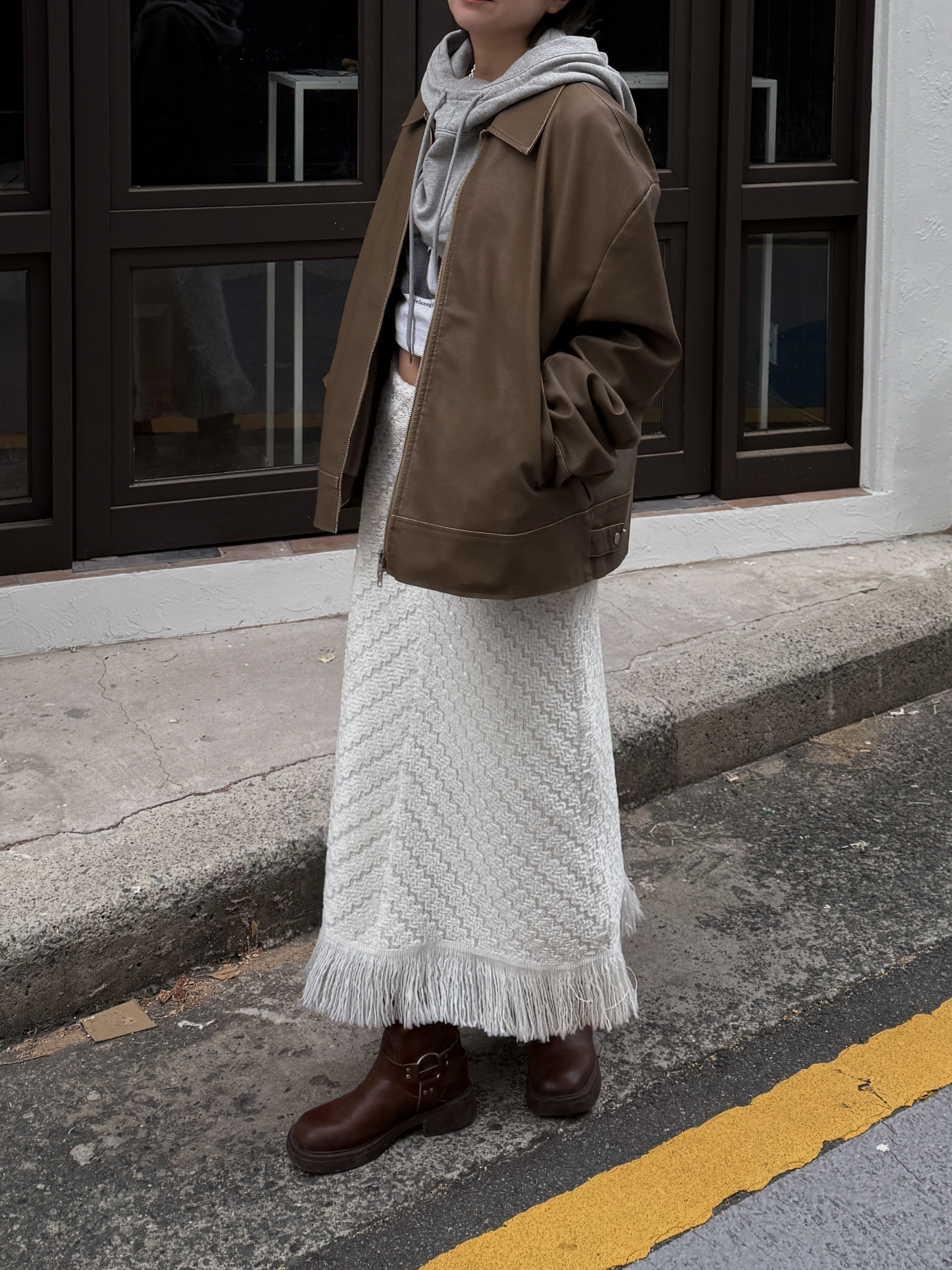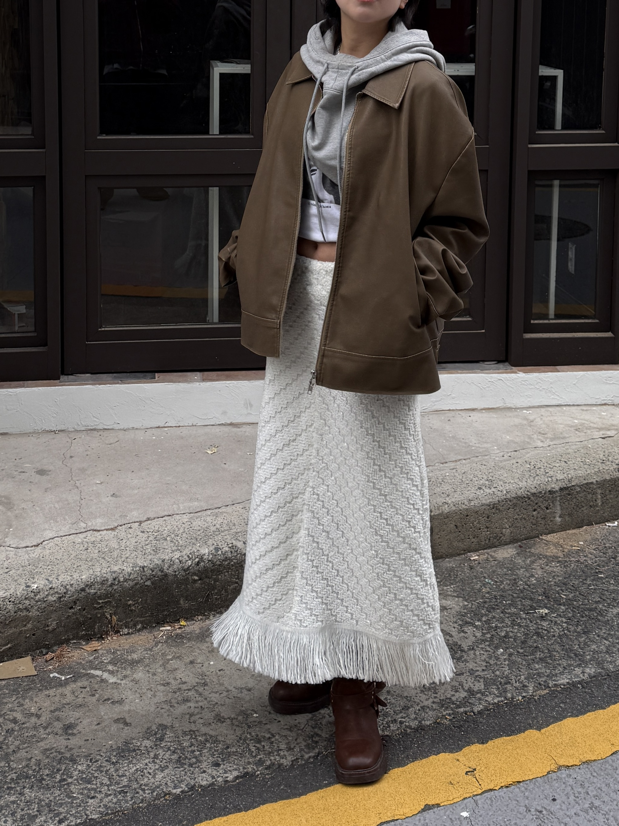 소프트 프린지 니트 롱스커트