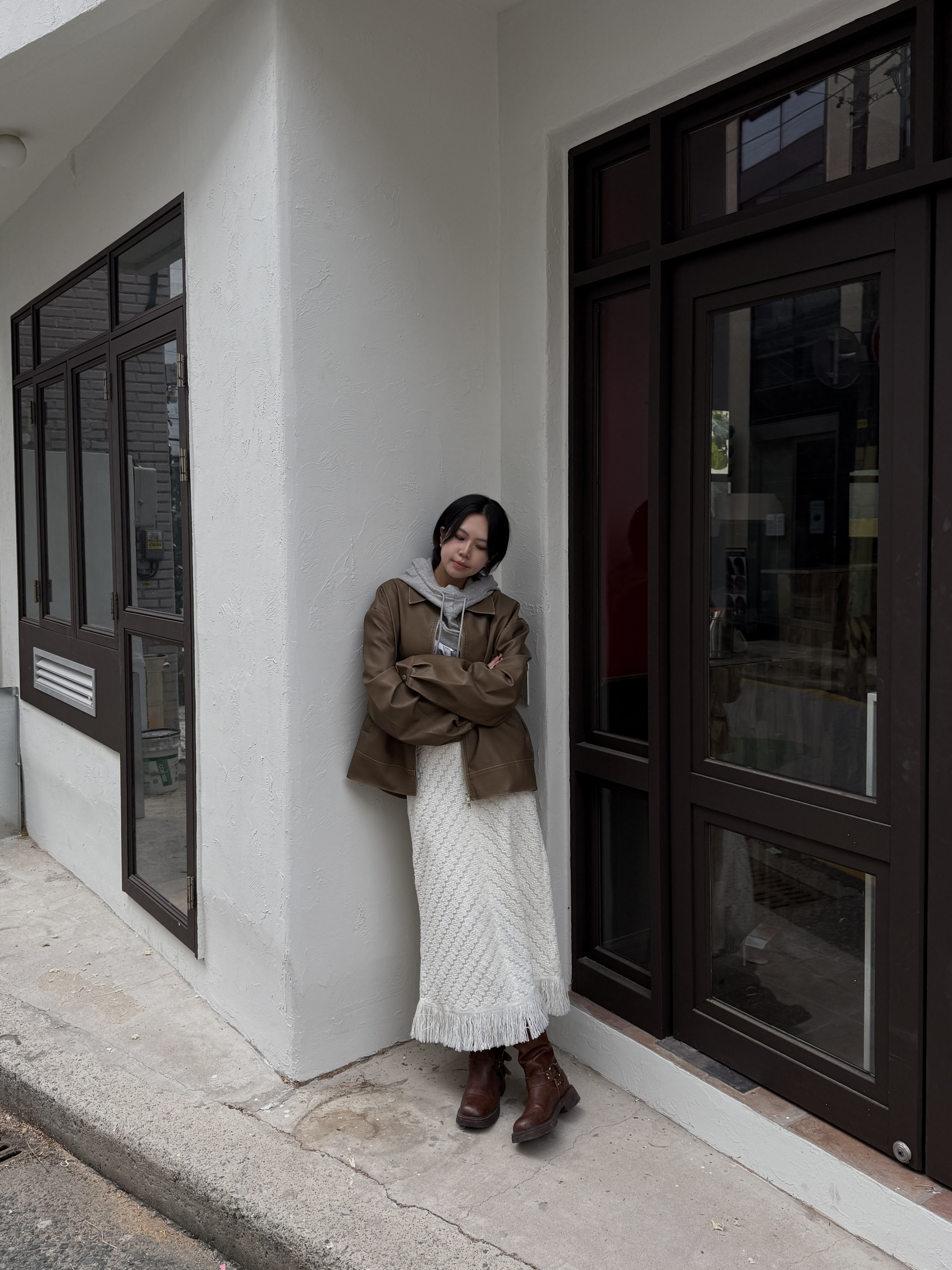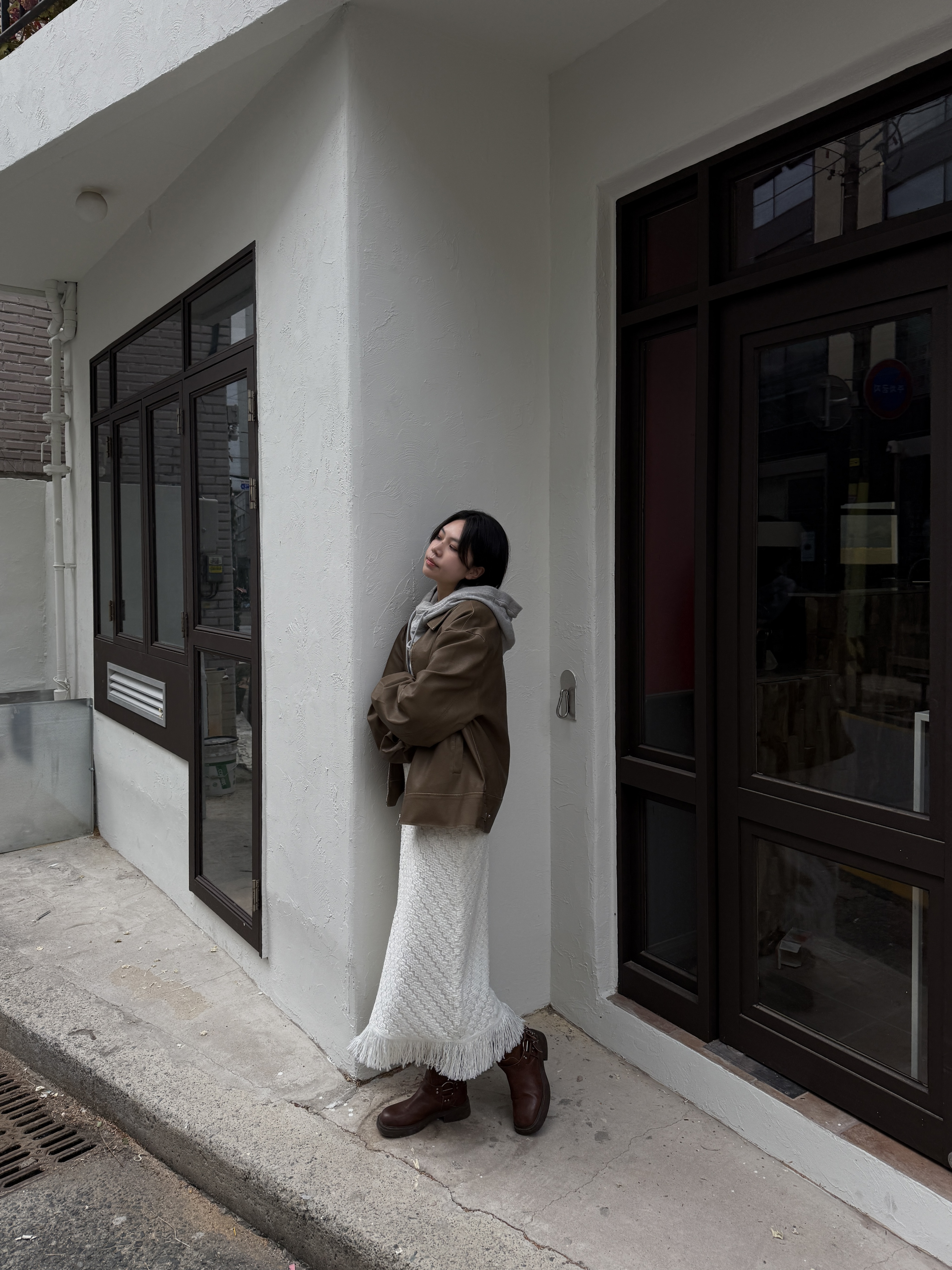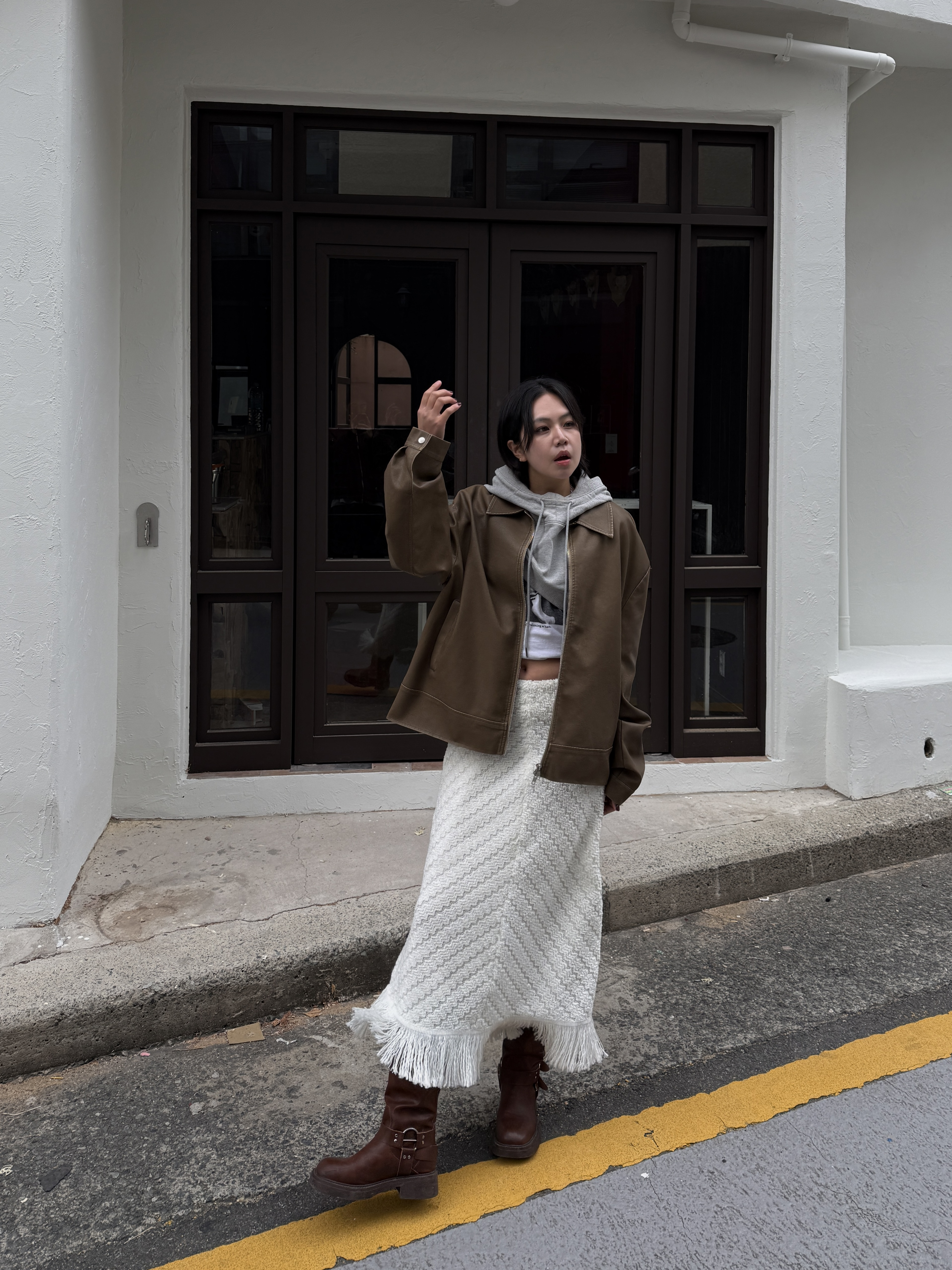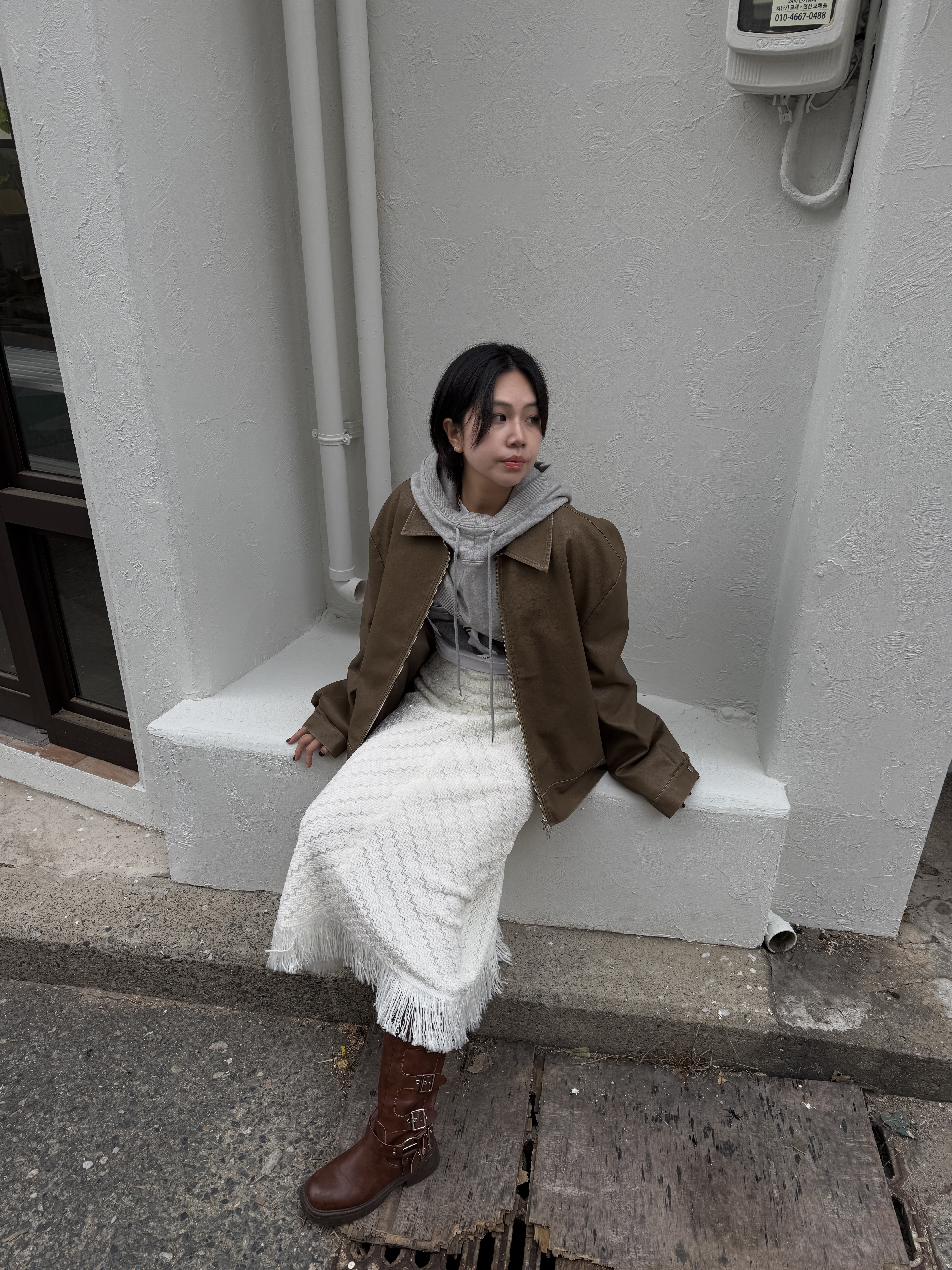 소프트 프린지 니트 롱스커트