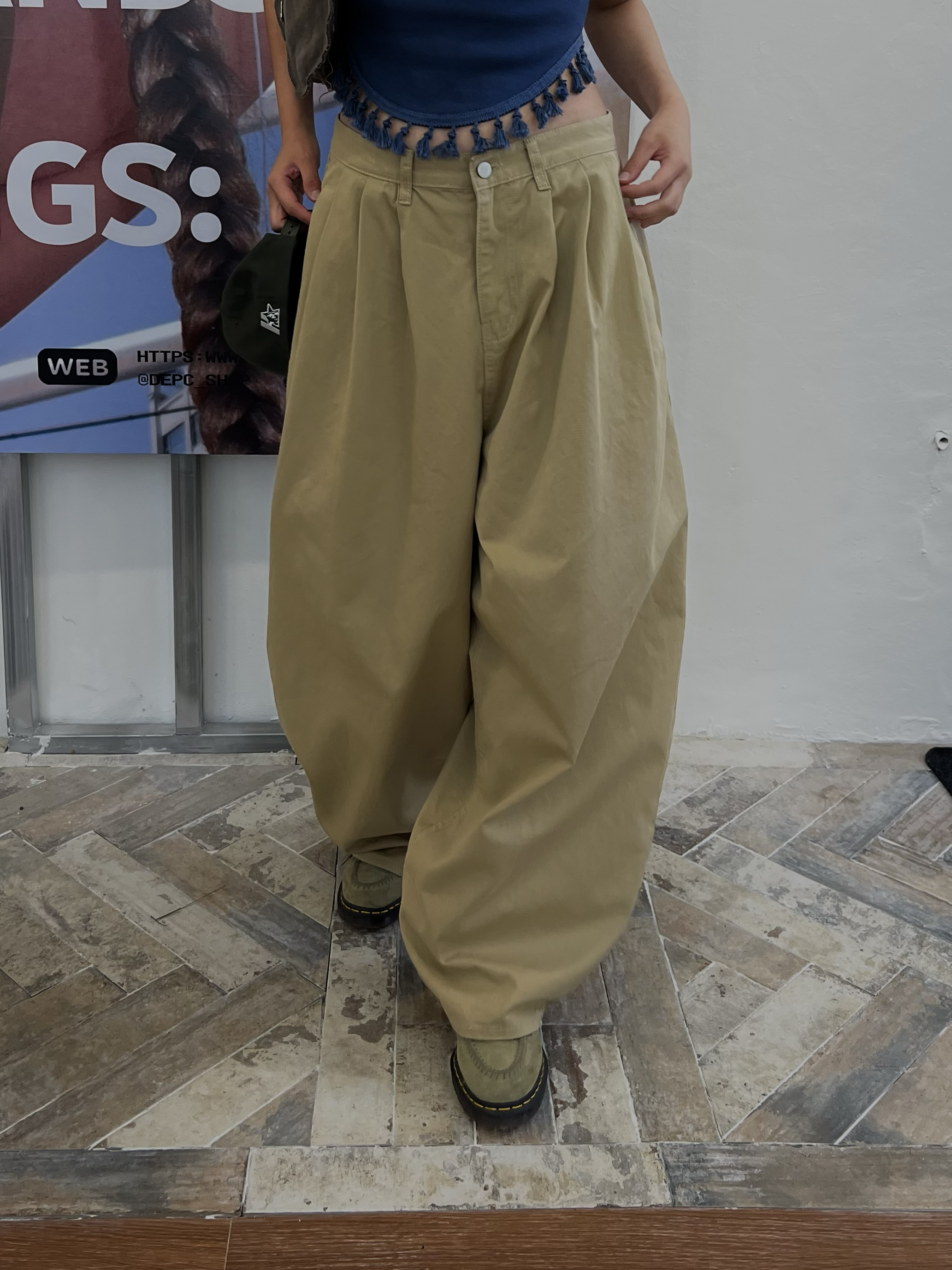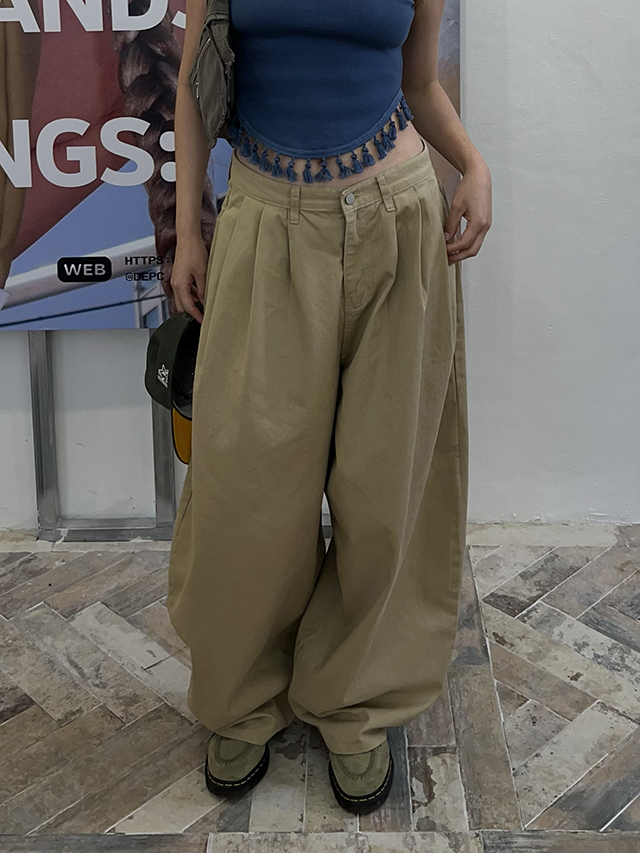 하이핀턱 와이드 벌룬 코튼팬츠