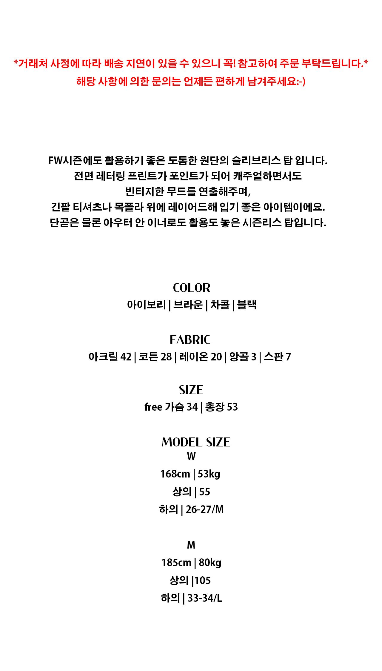 - 1:1오더 시스템으로 재고를 쌓아두지 않고 판매하고 있어 당일 배송은 불가능합니다.