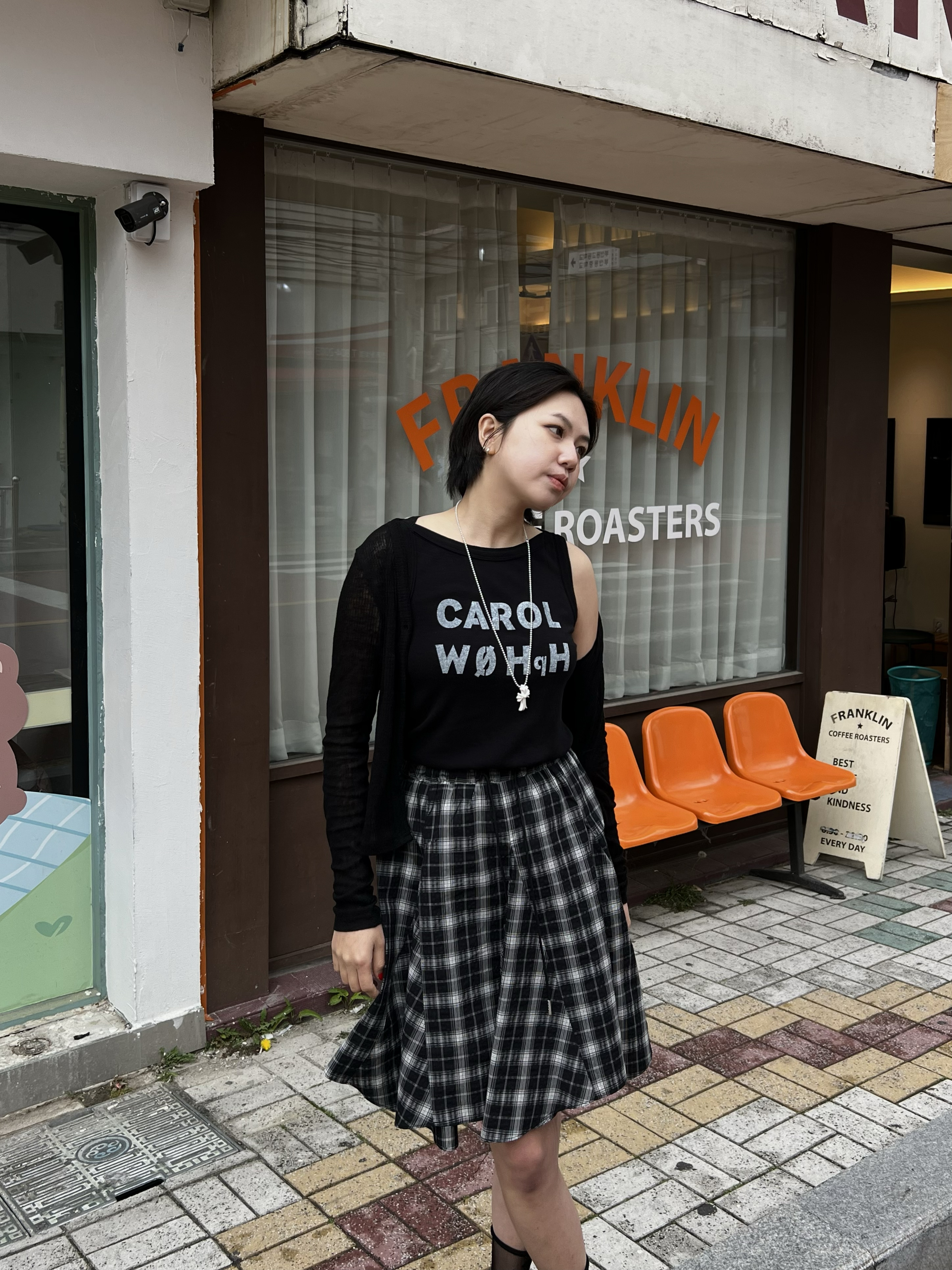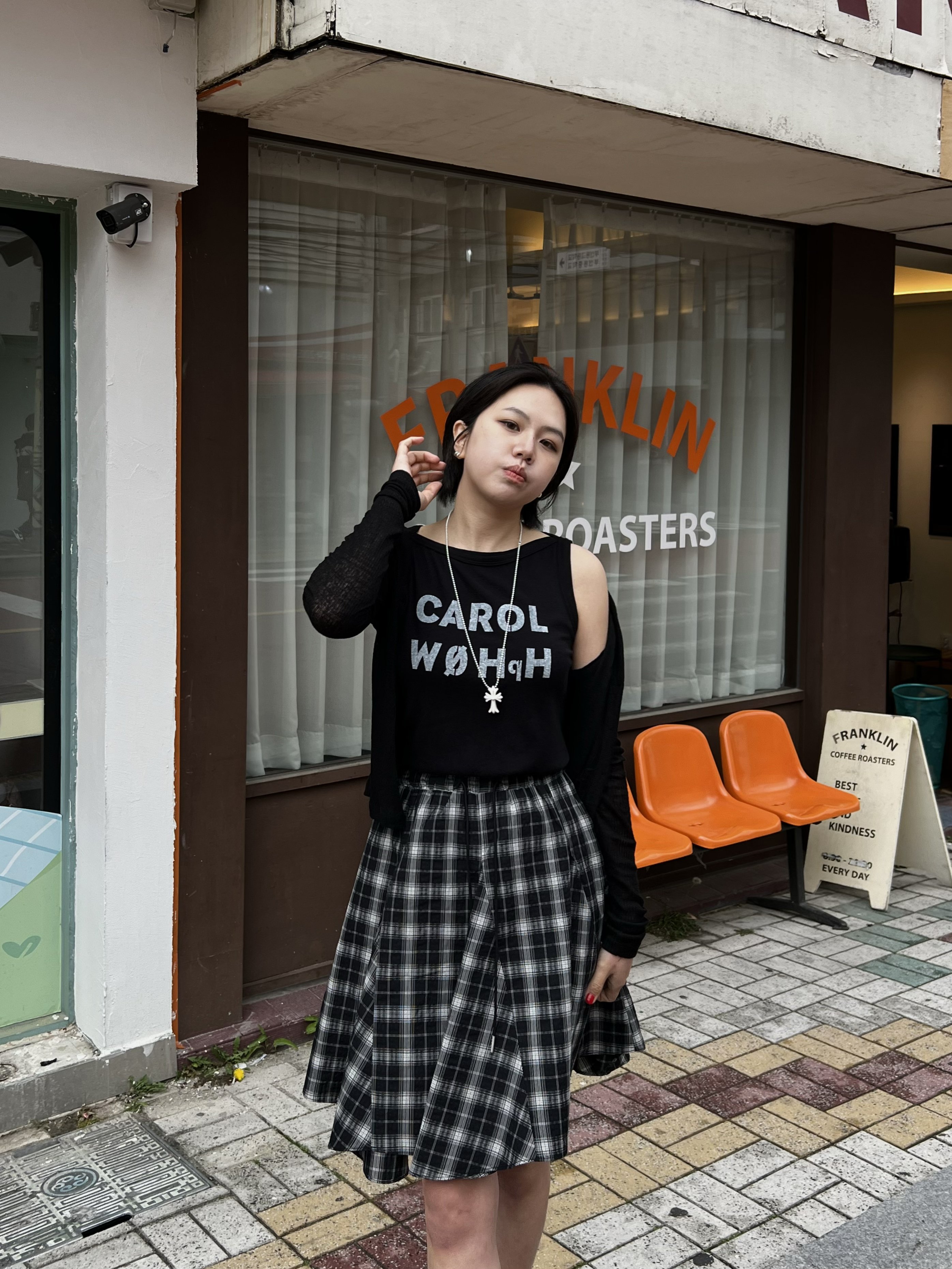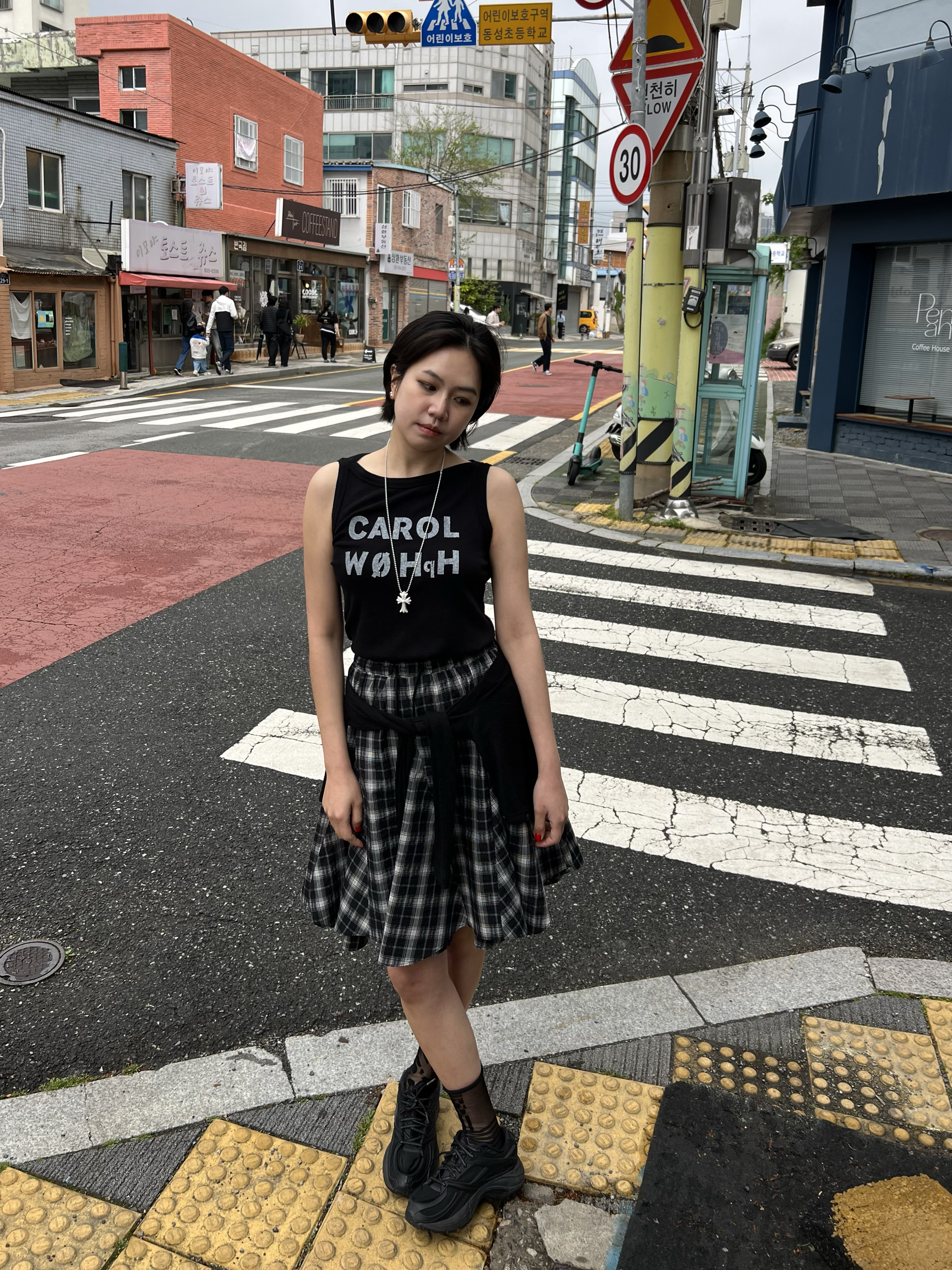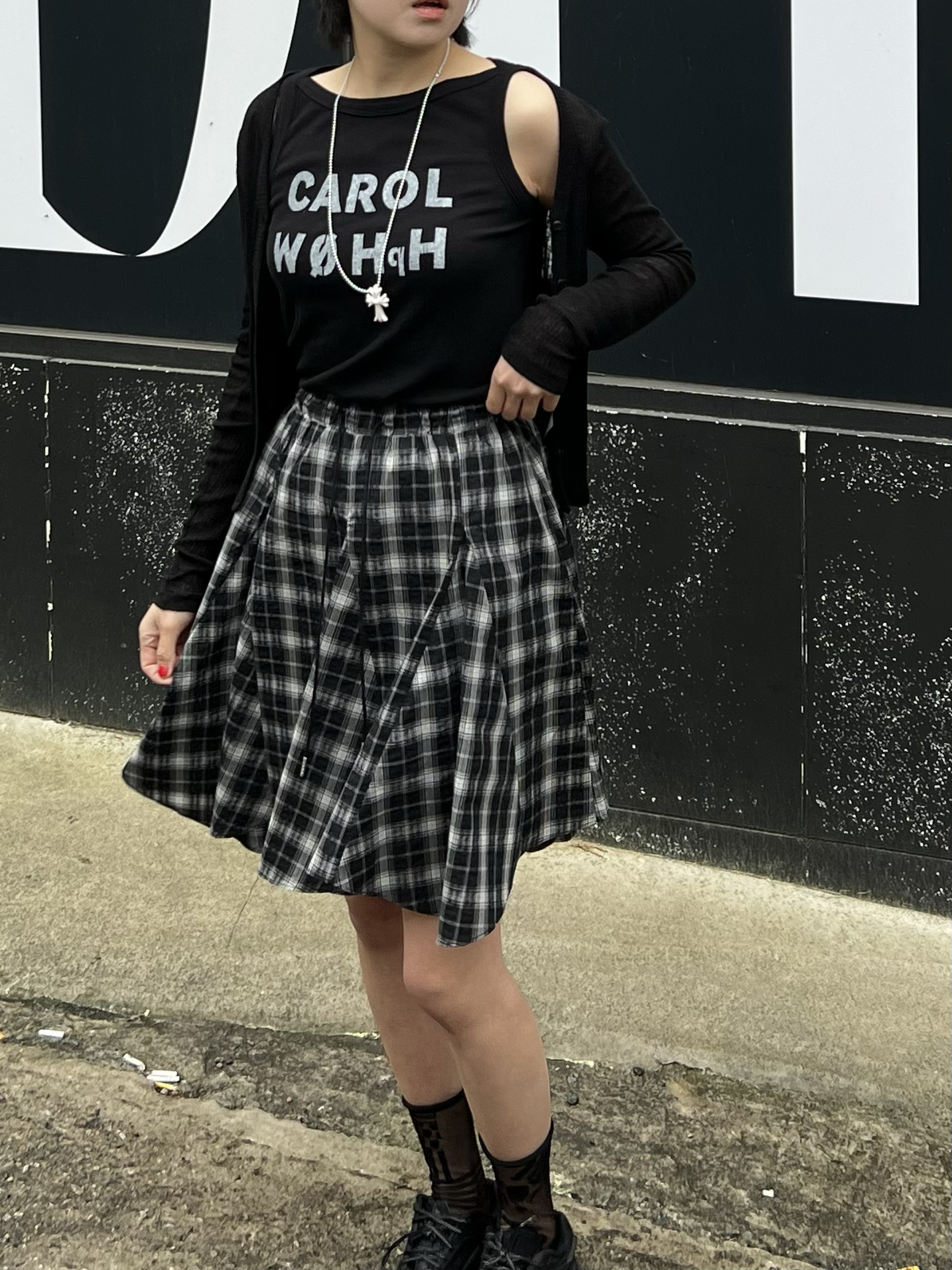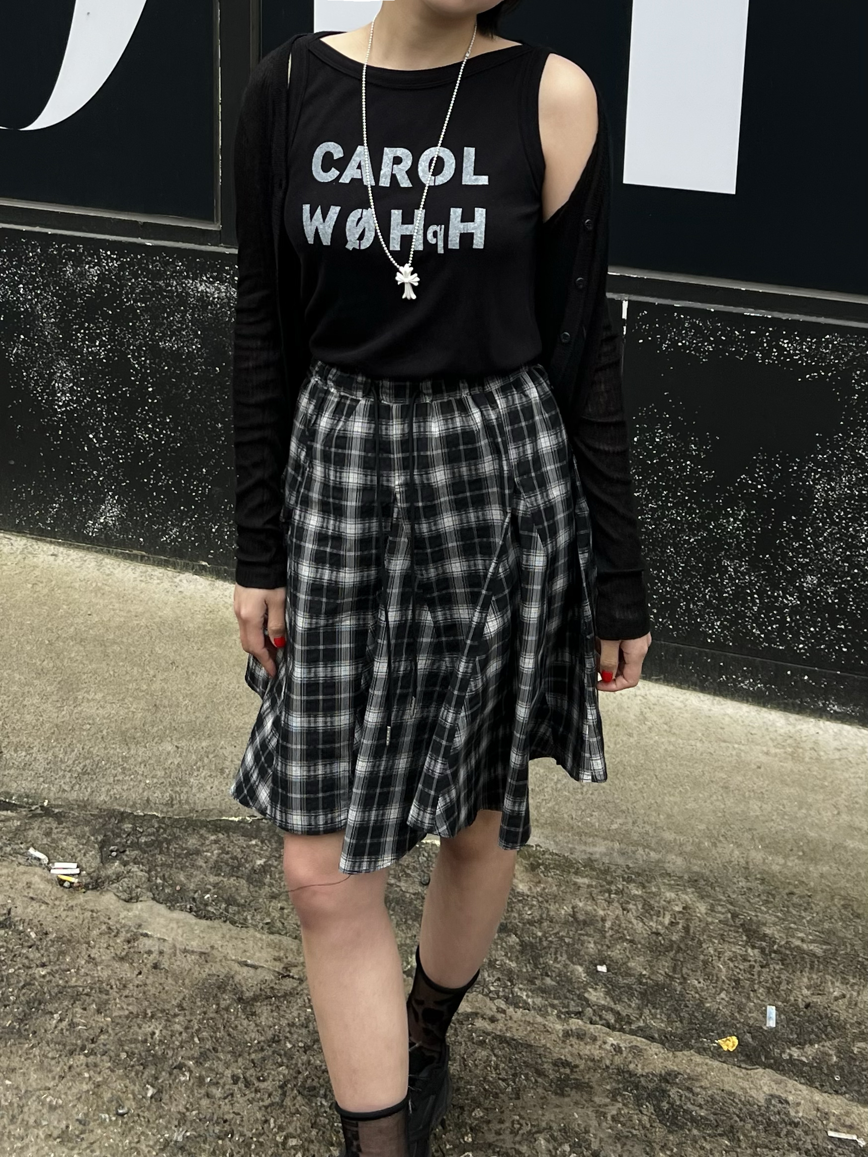 빈티지 체크 플레어 스커트
