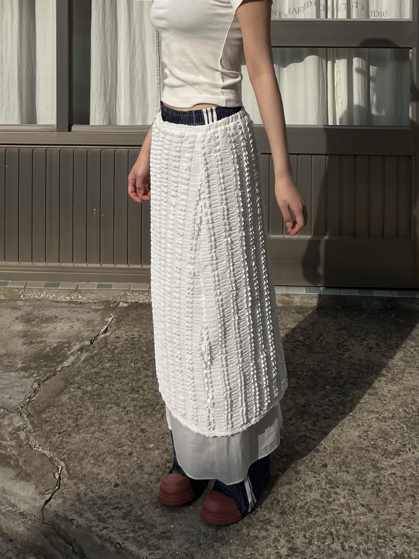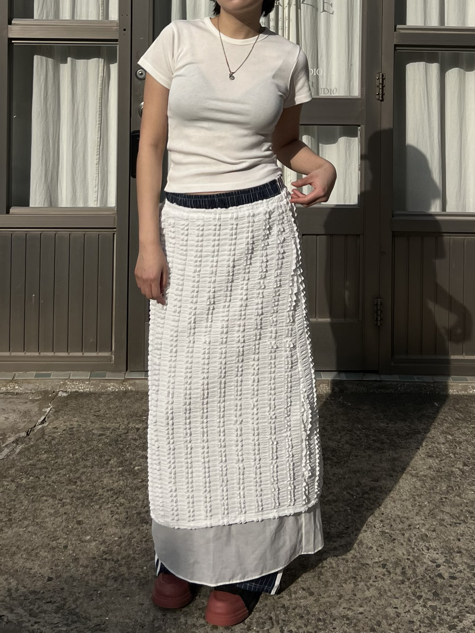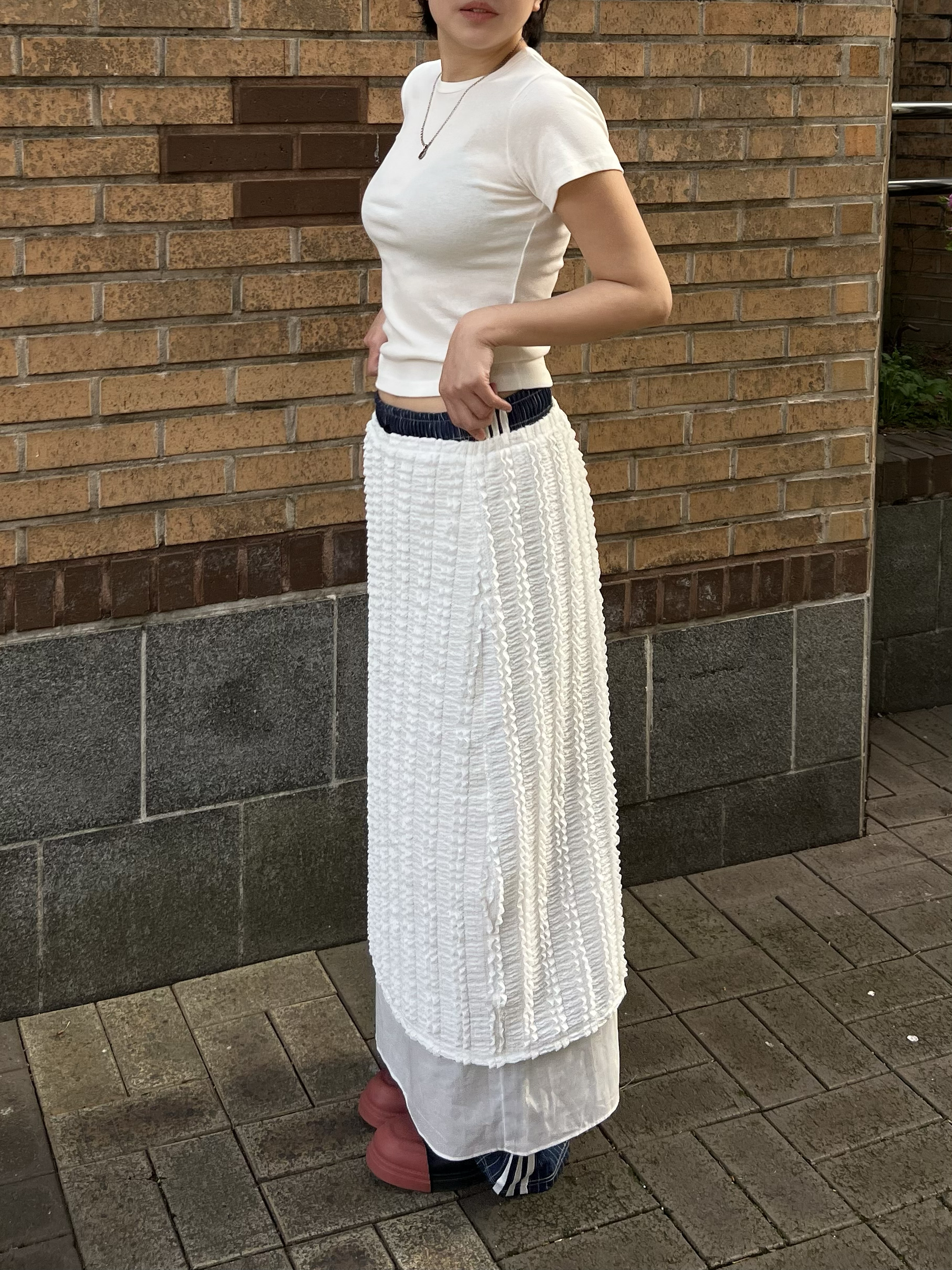 레이스 레이어드 롱스커트