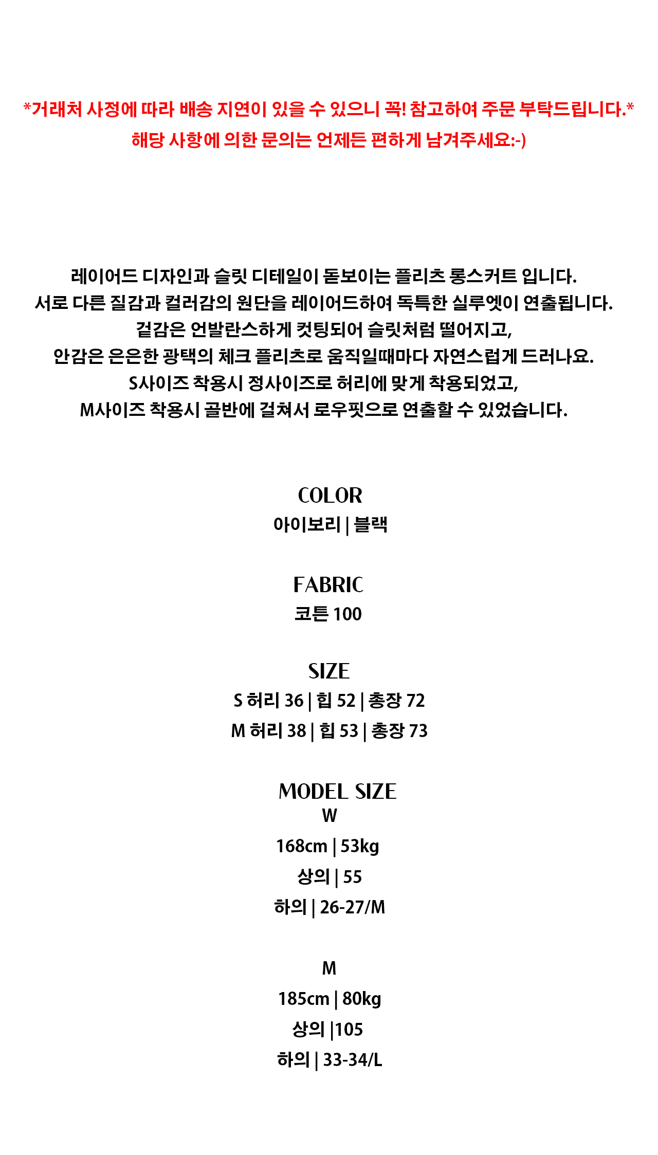 - 1:1오더 시스템으로 재고를 쌓아두지 않고 판매하고 있어 당일 배송은 불가능합니다.
