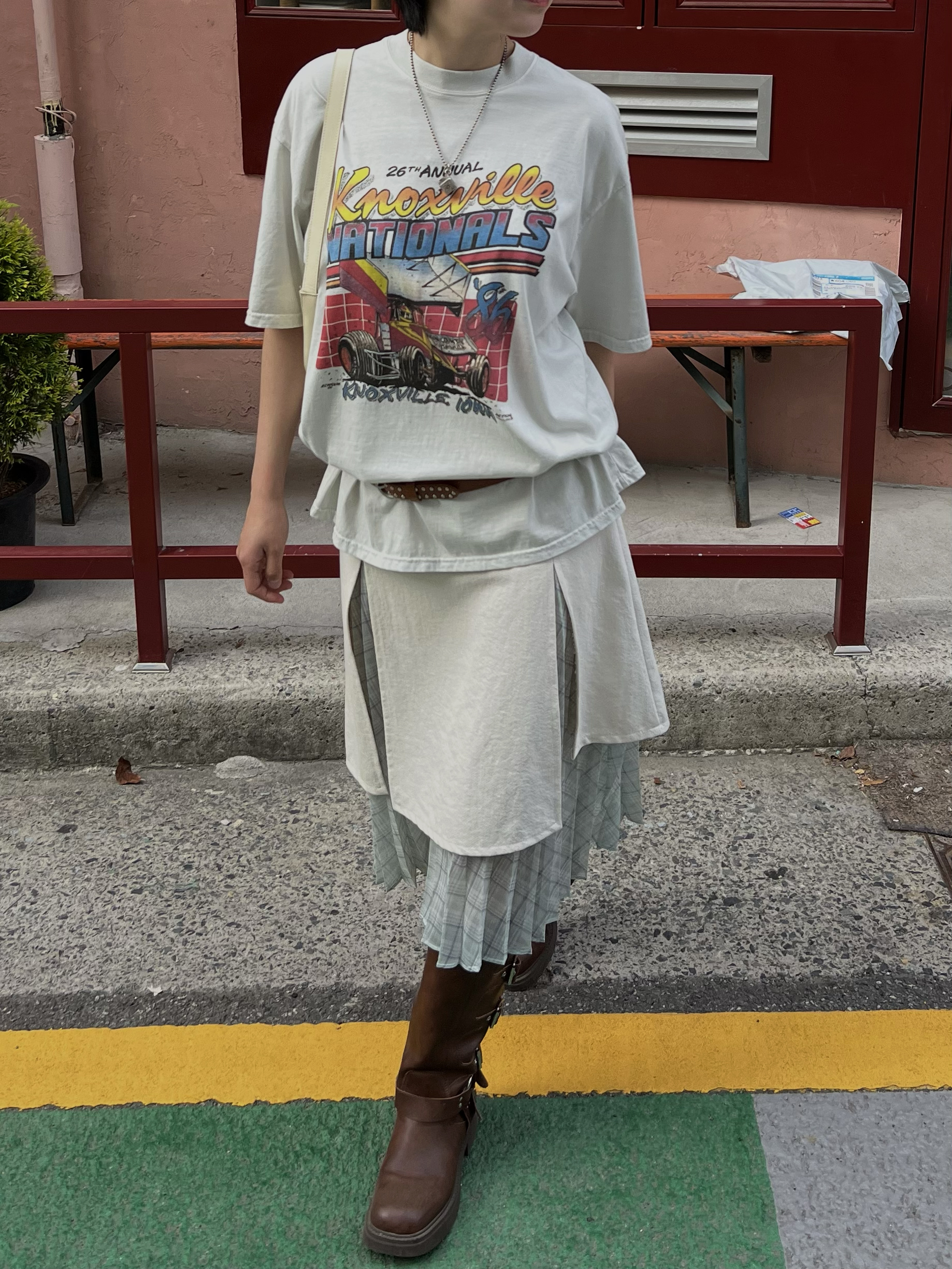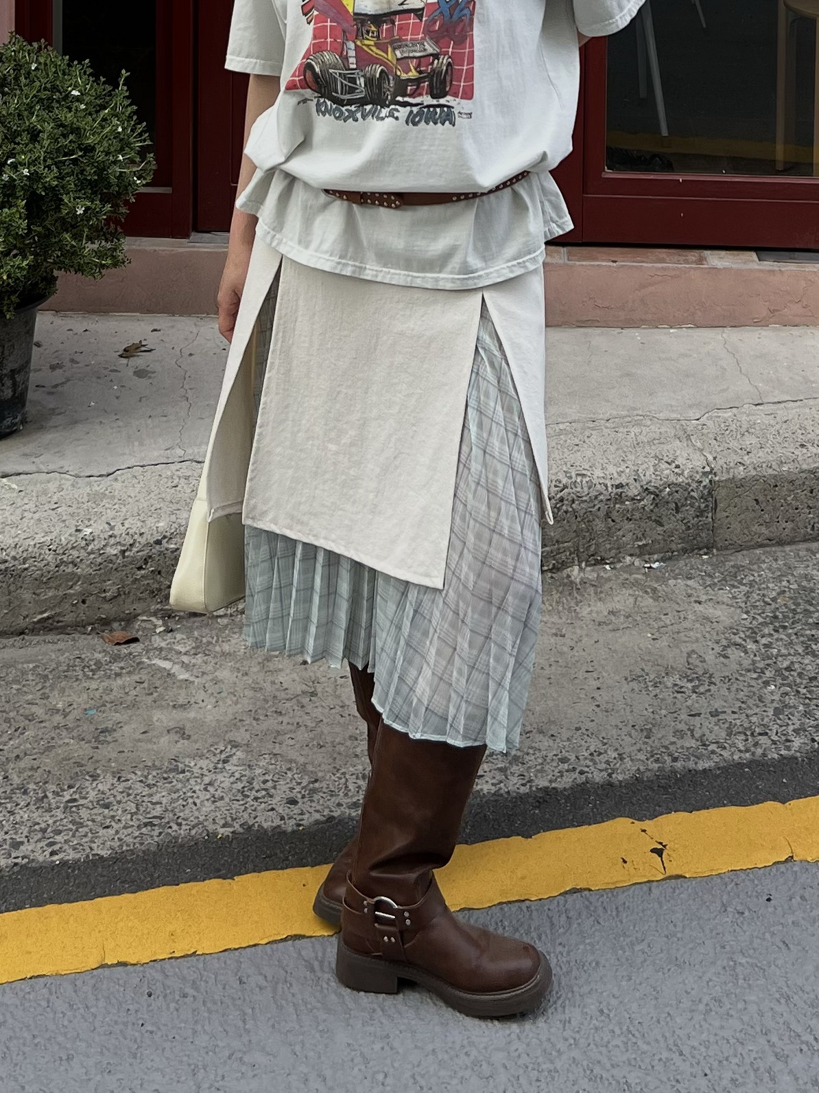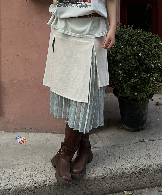 슬릿 레이어드 플리츠 롱스커트(아이보리)
