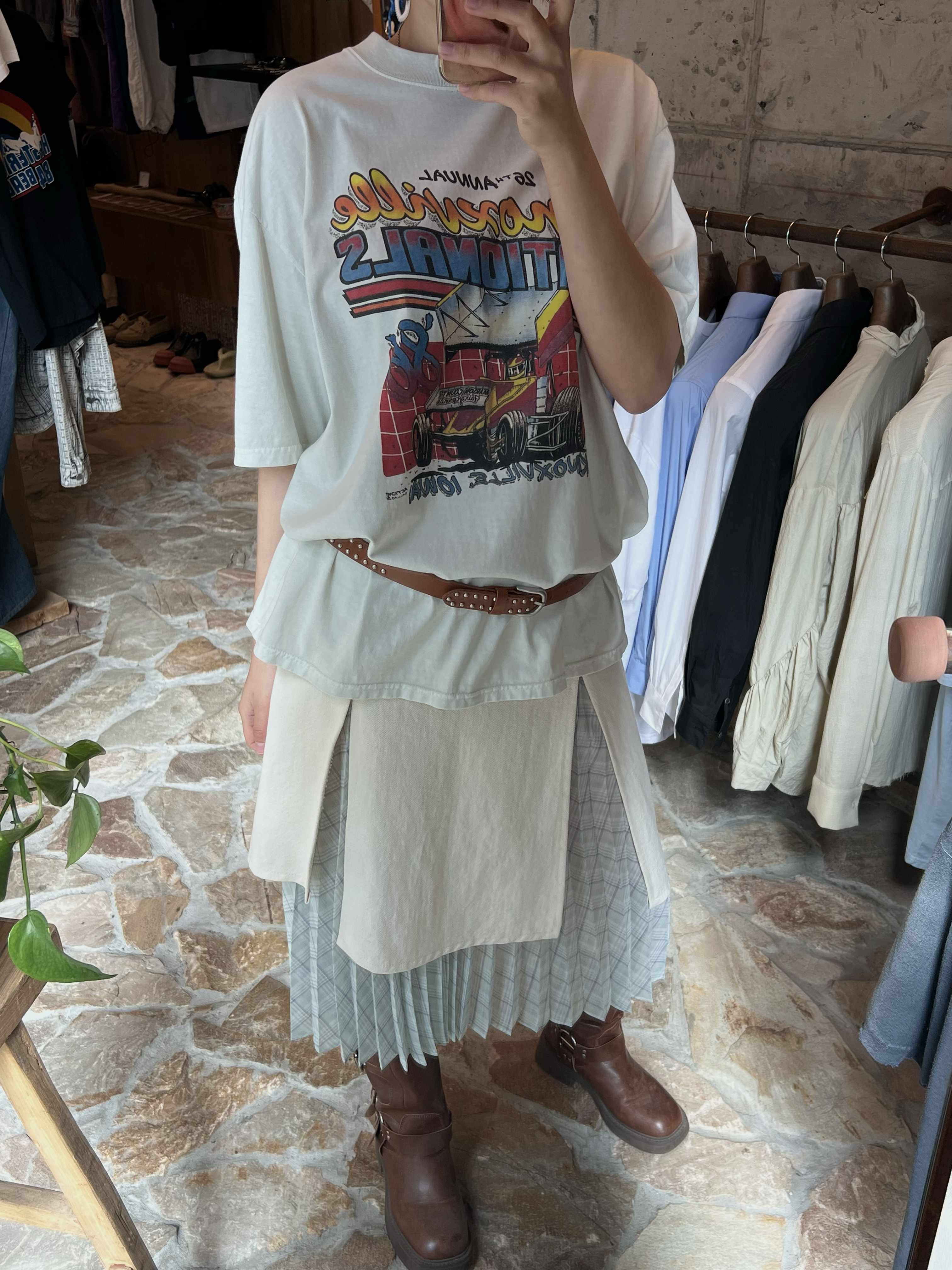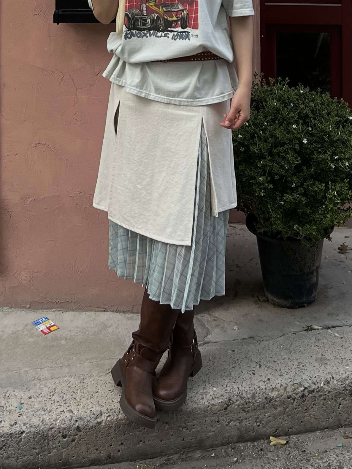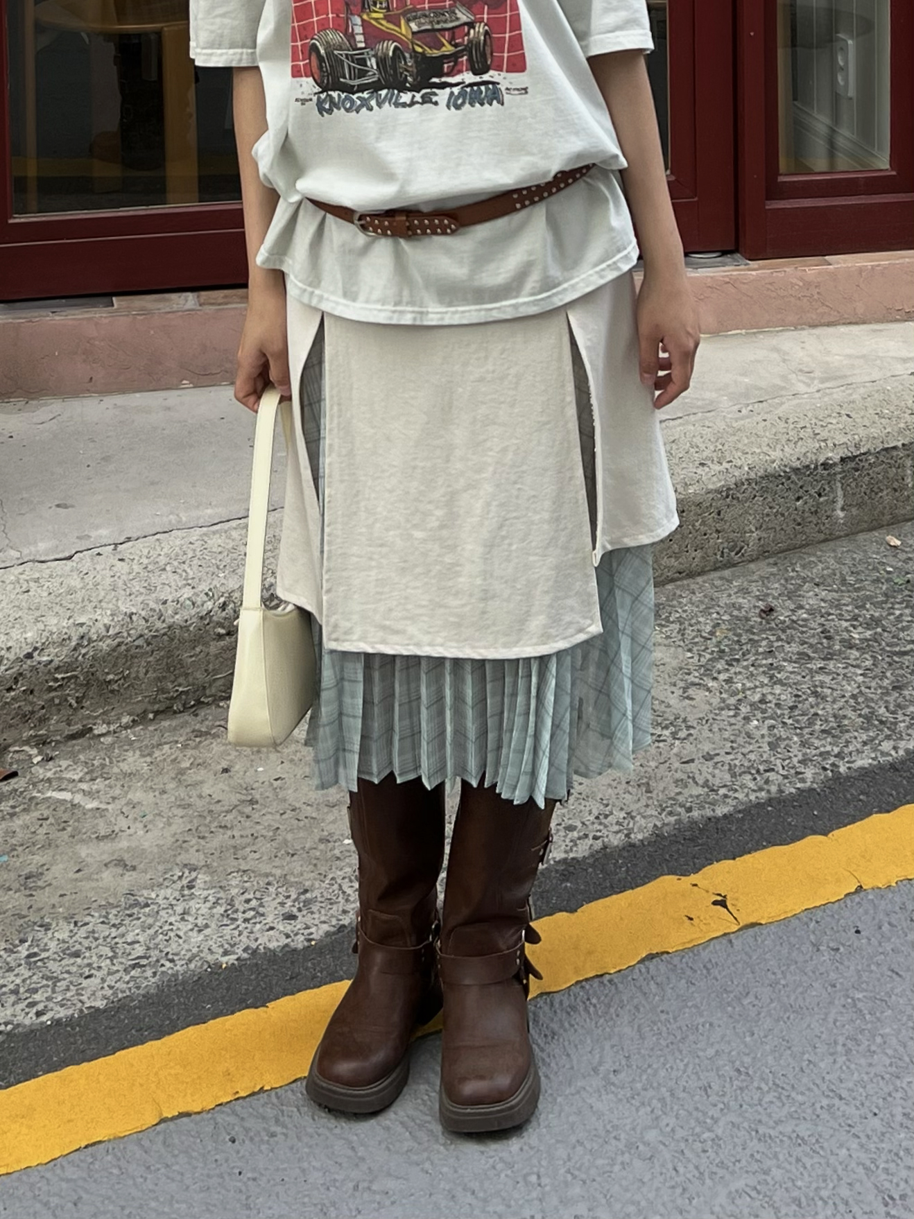 슬릿 레이어드 플리츠 롱스커트(아이보리)