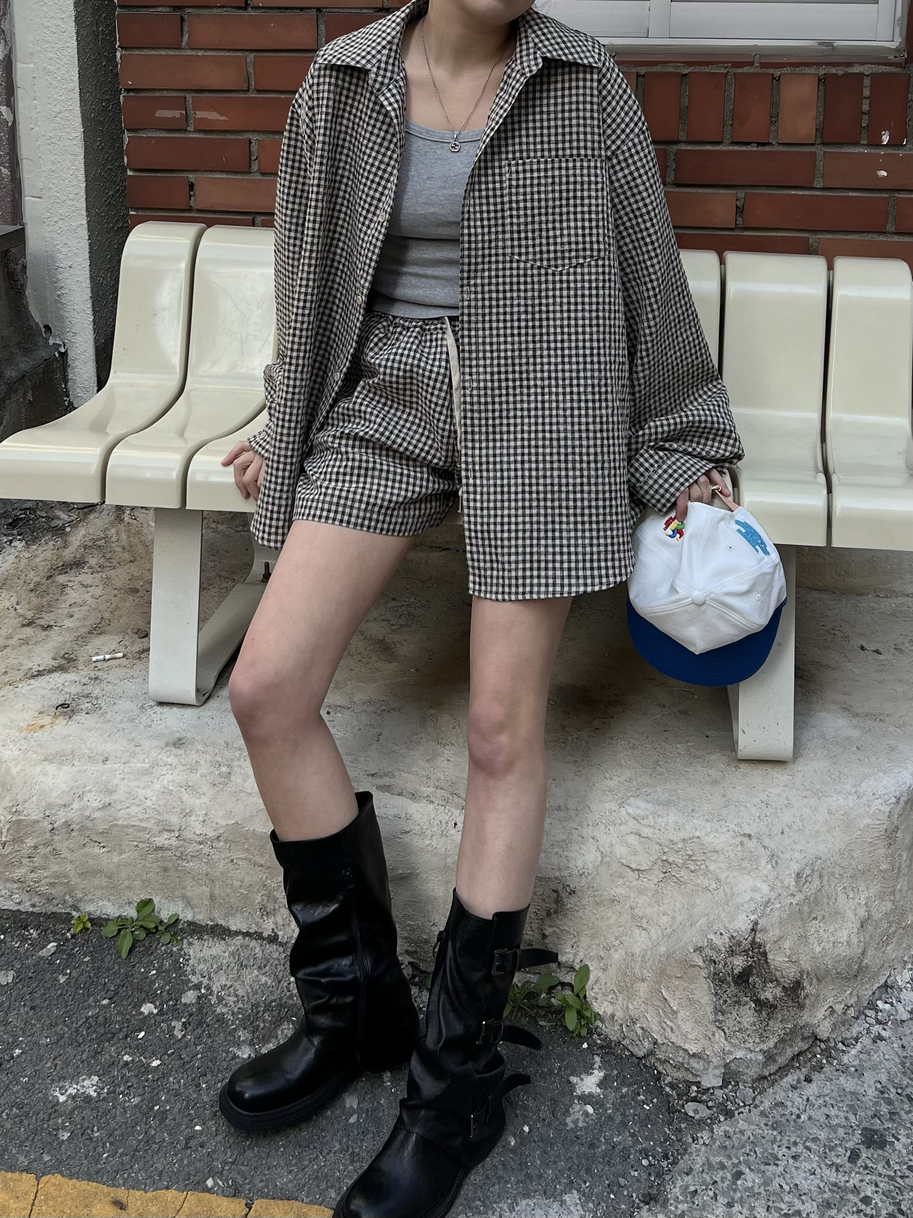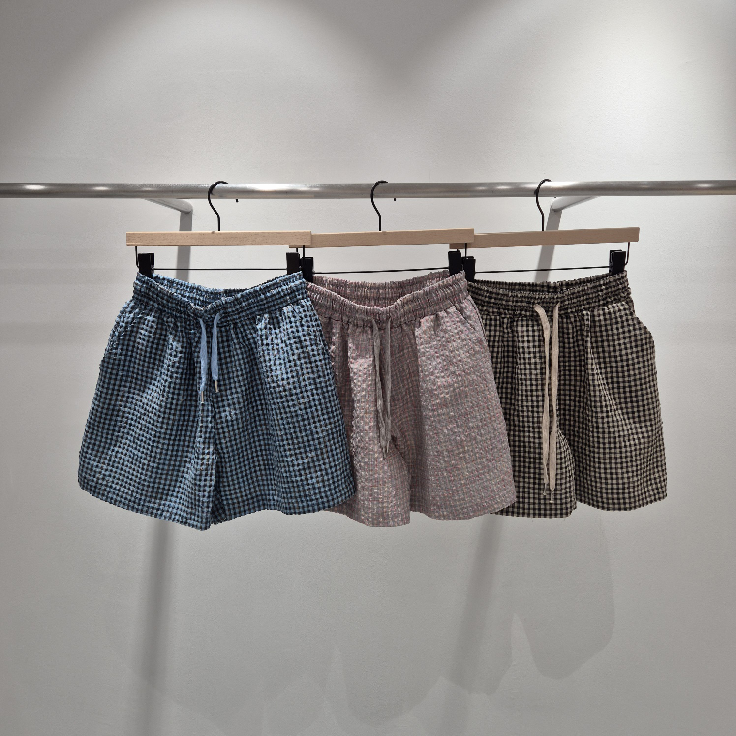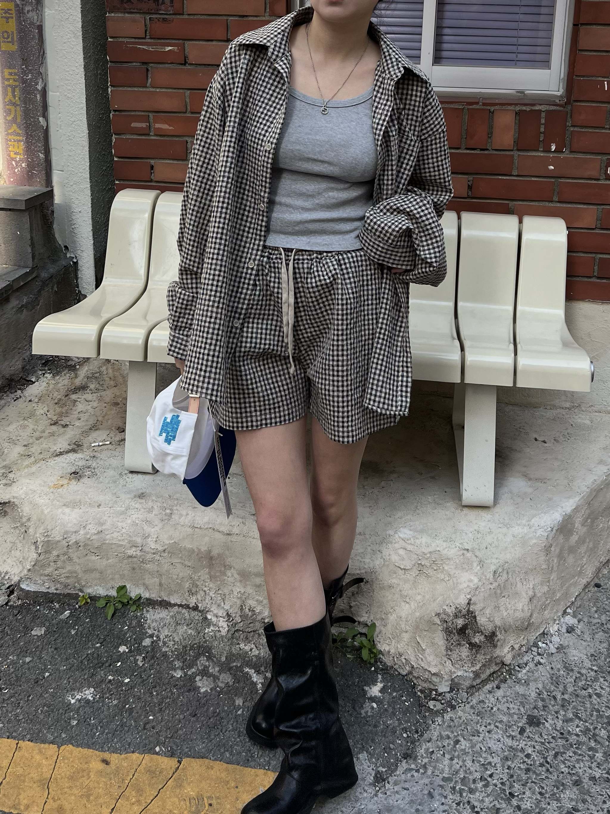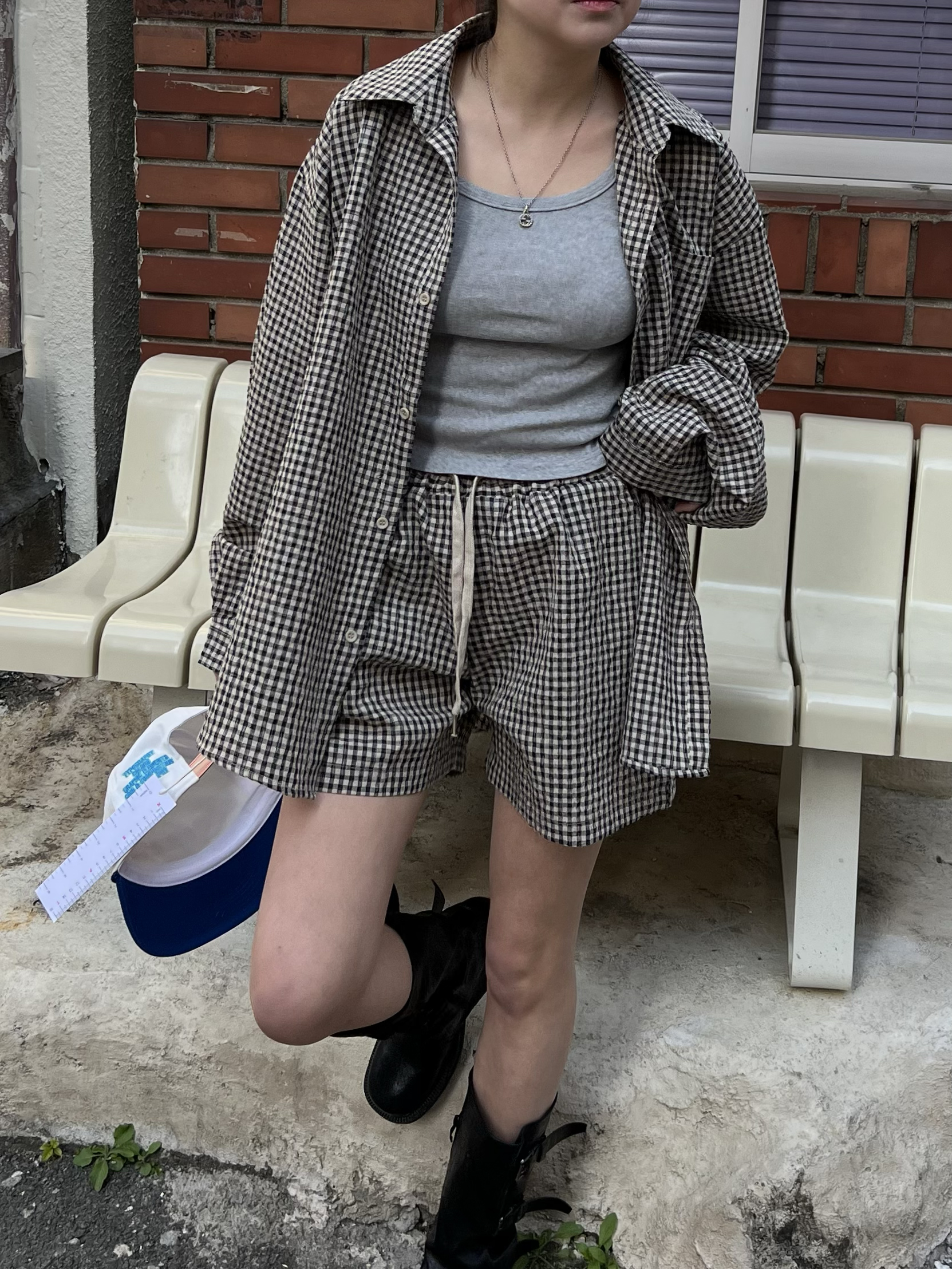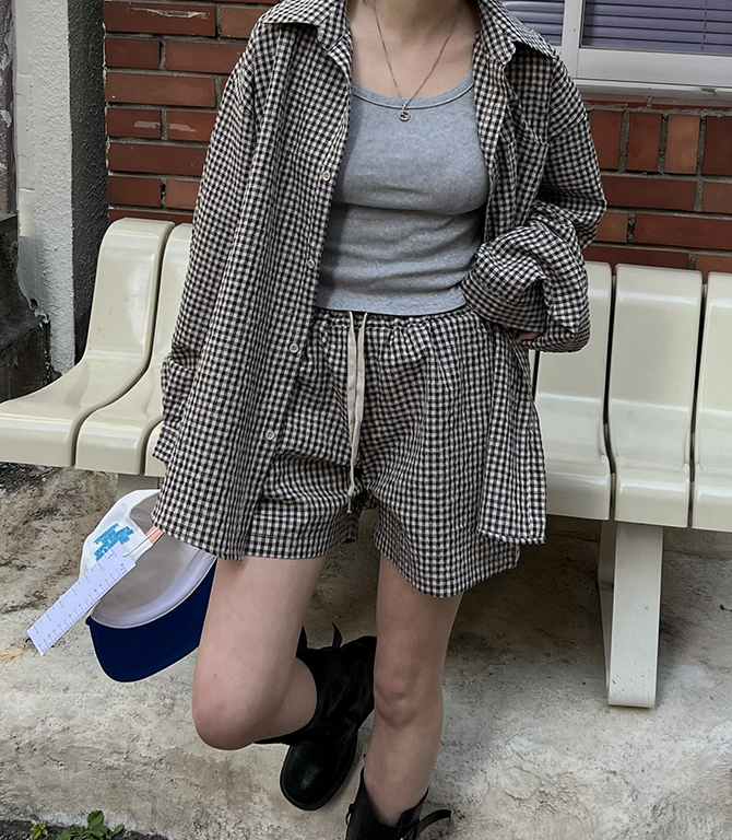 시어서커 체크 밴딩 숏팬츠