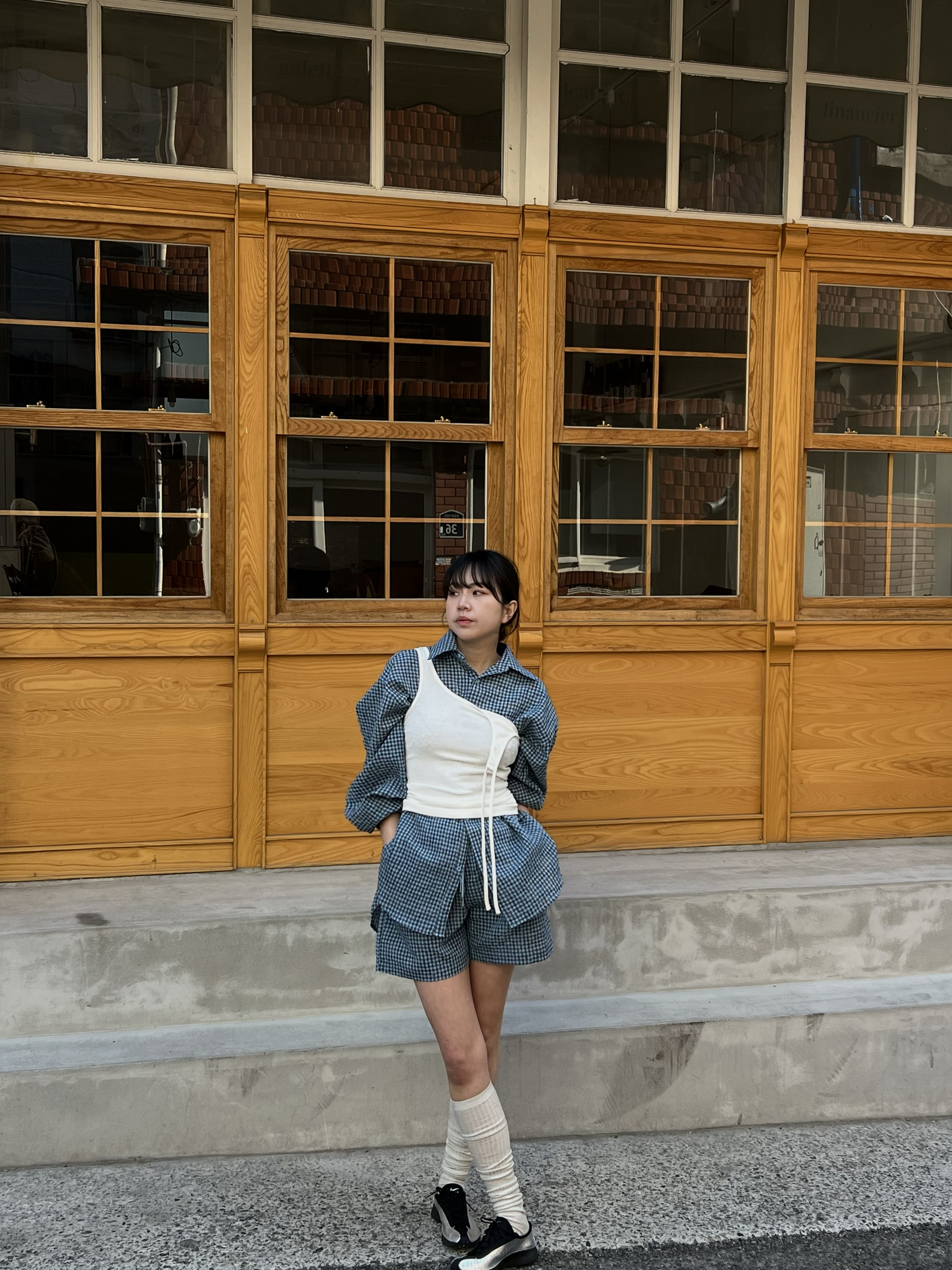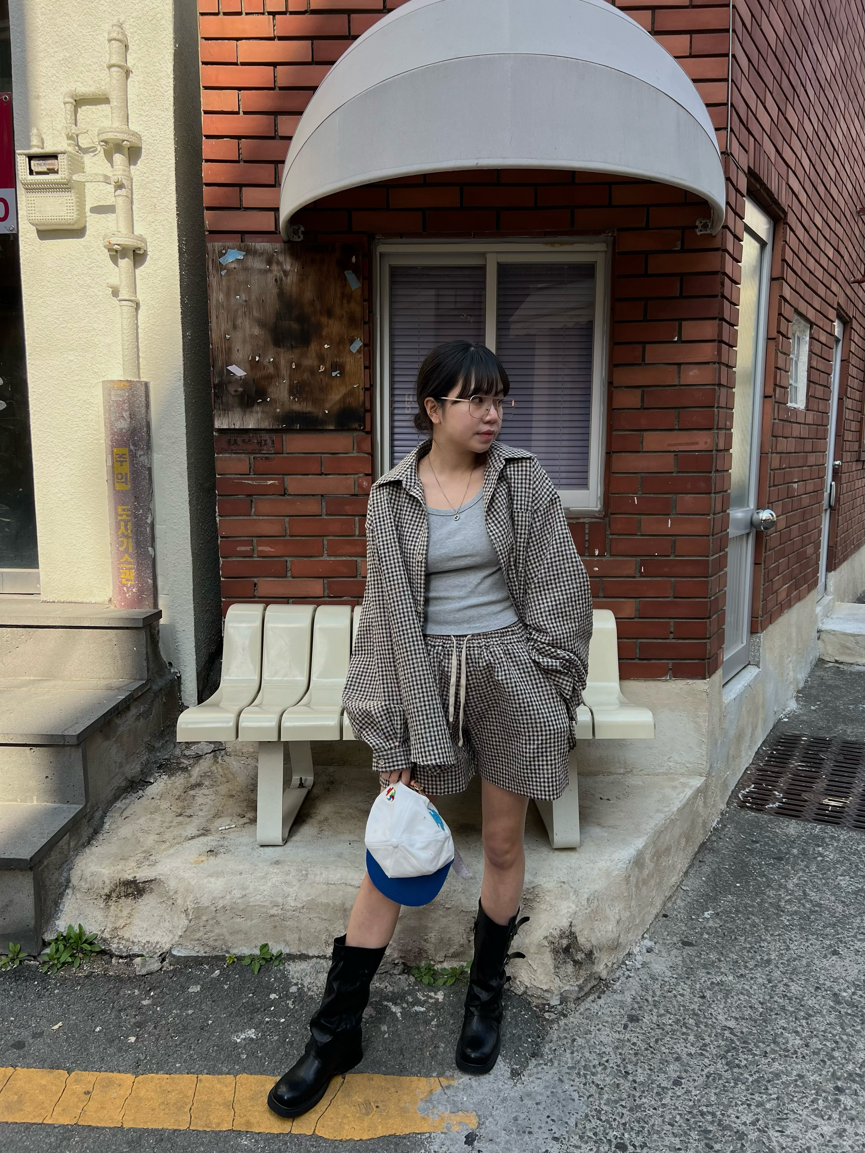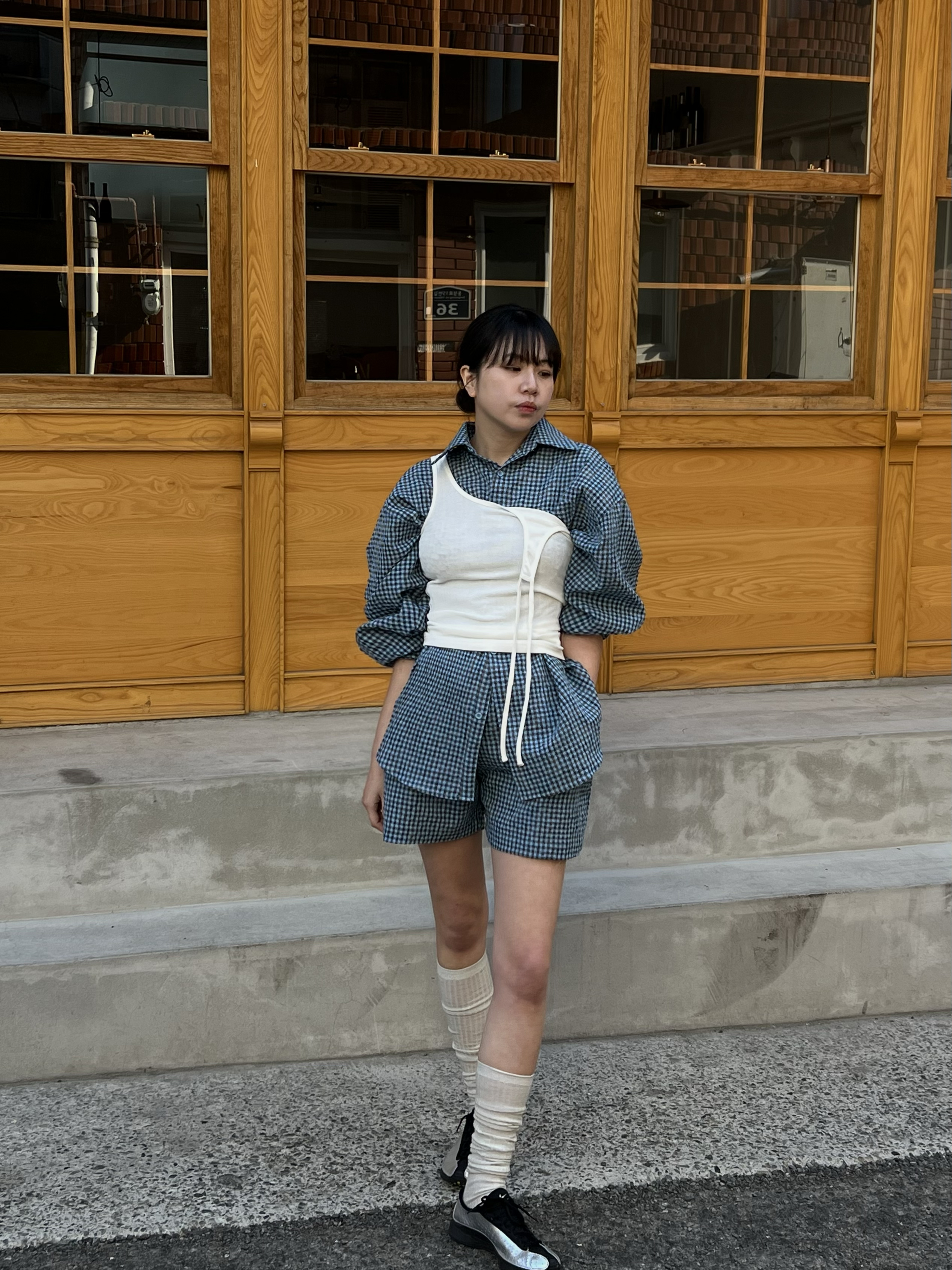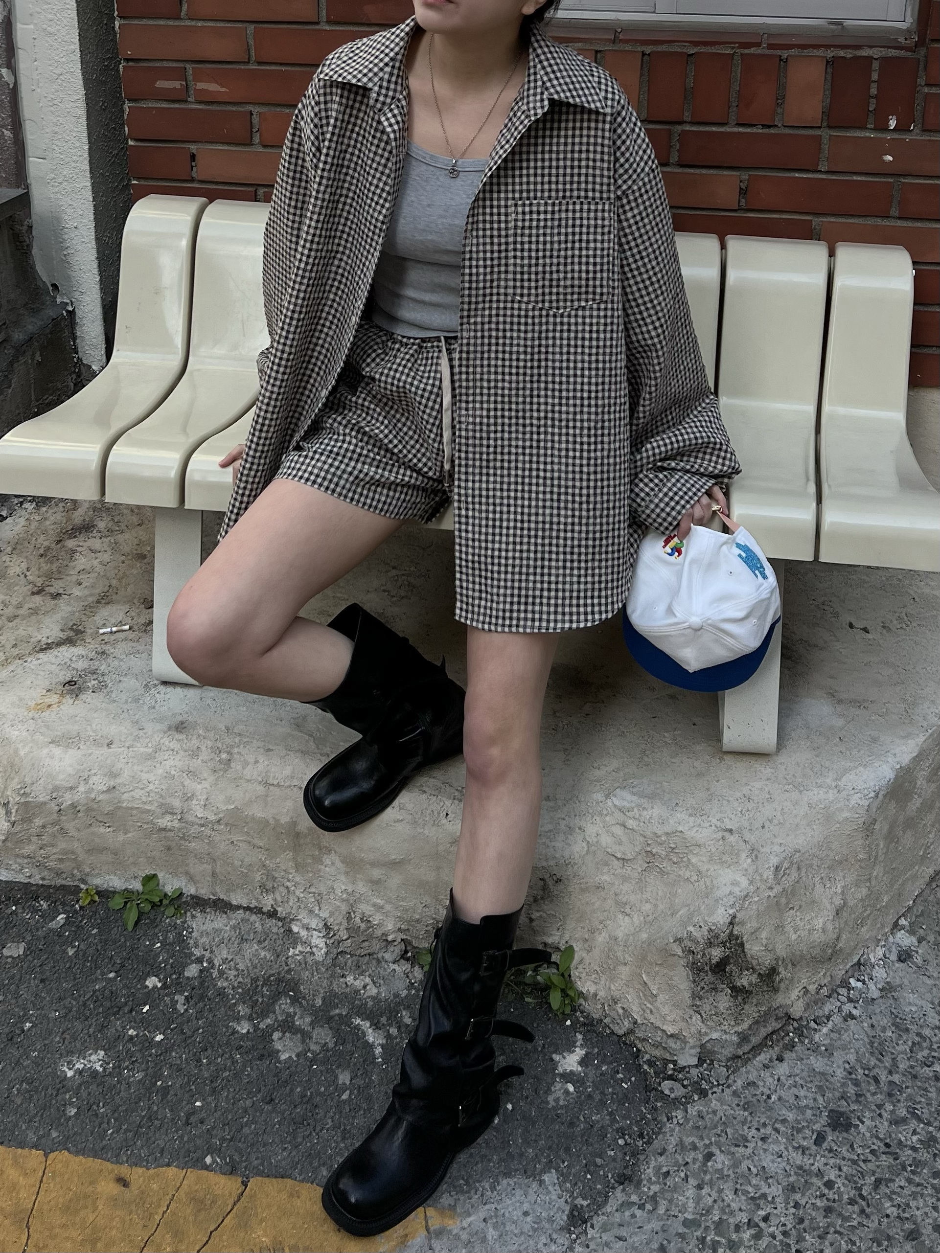 시어서커 체크 밴딩 숏팬츠