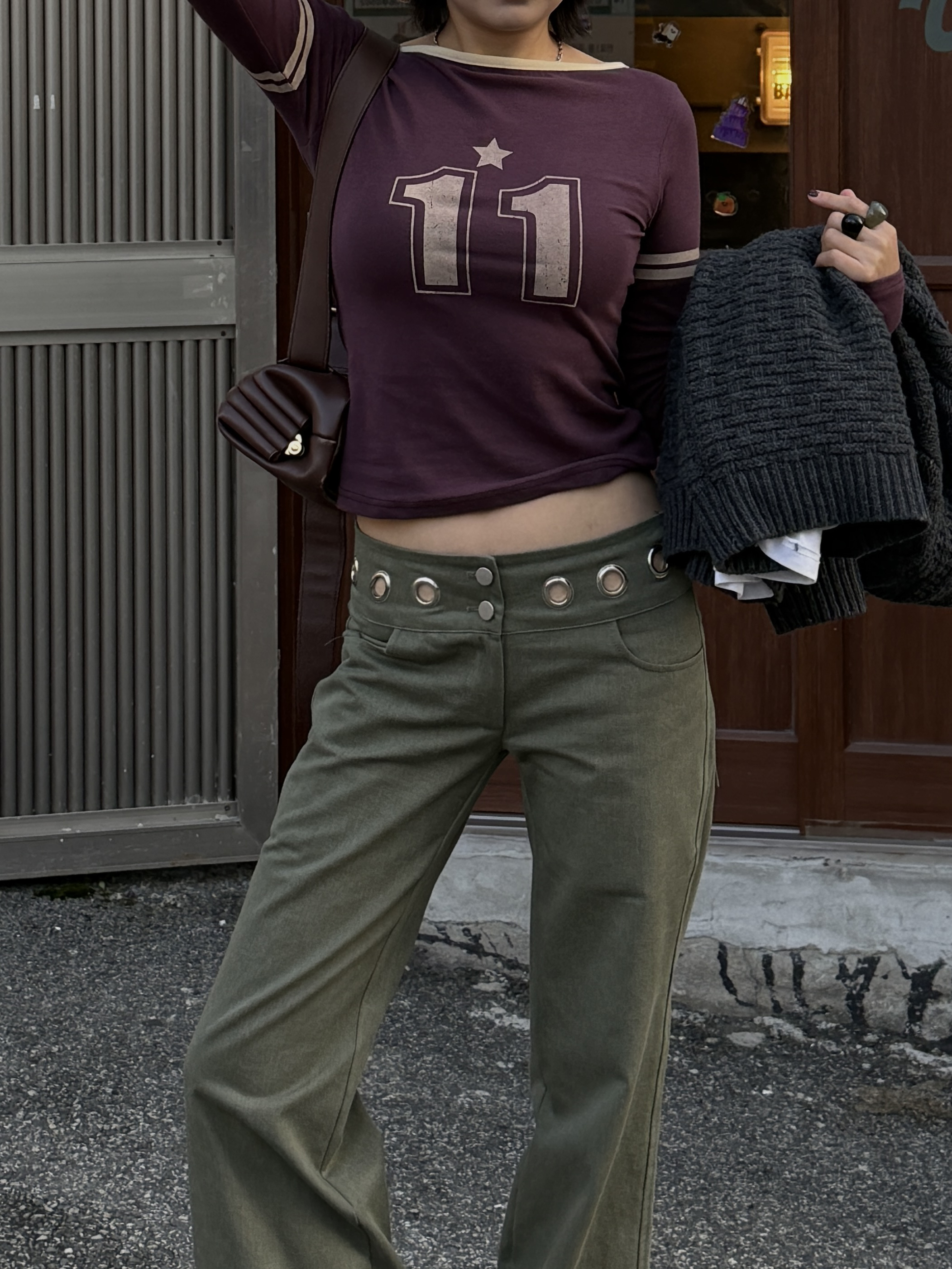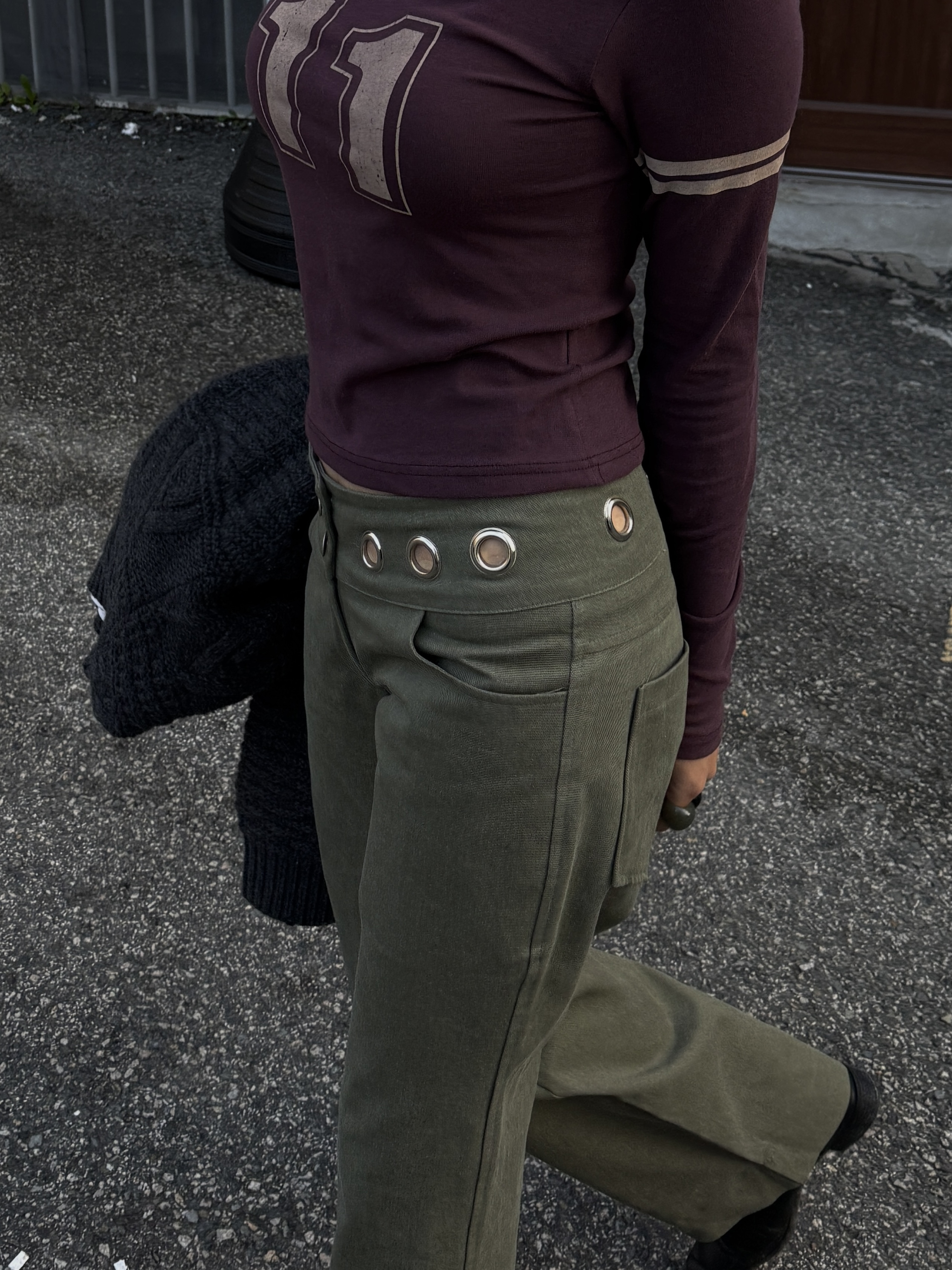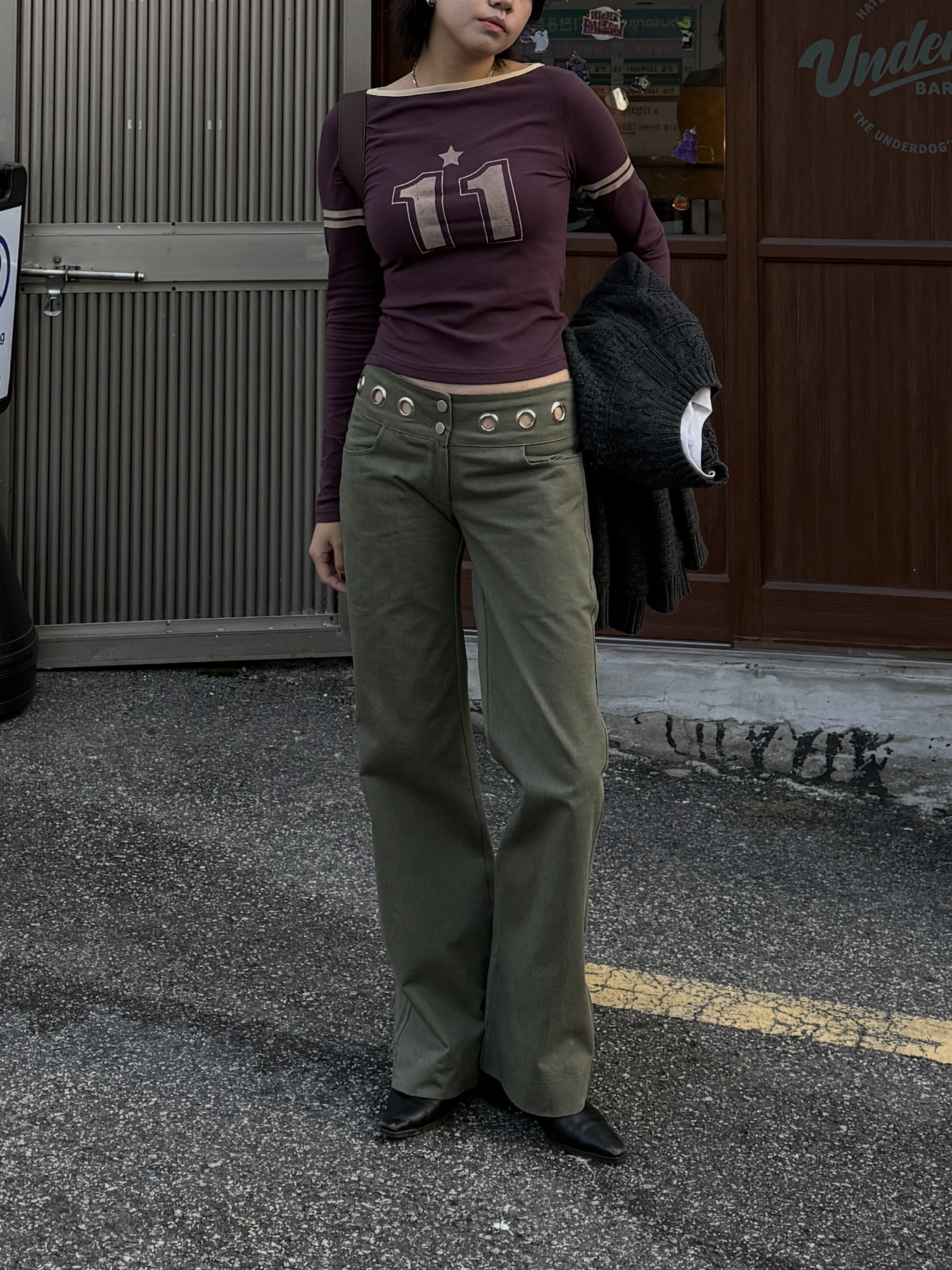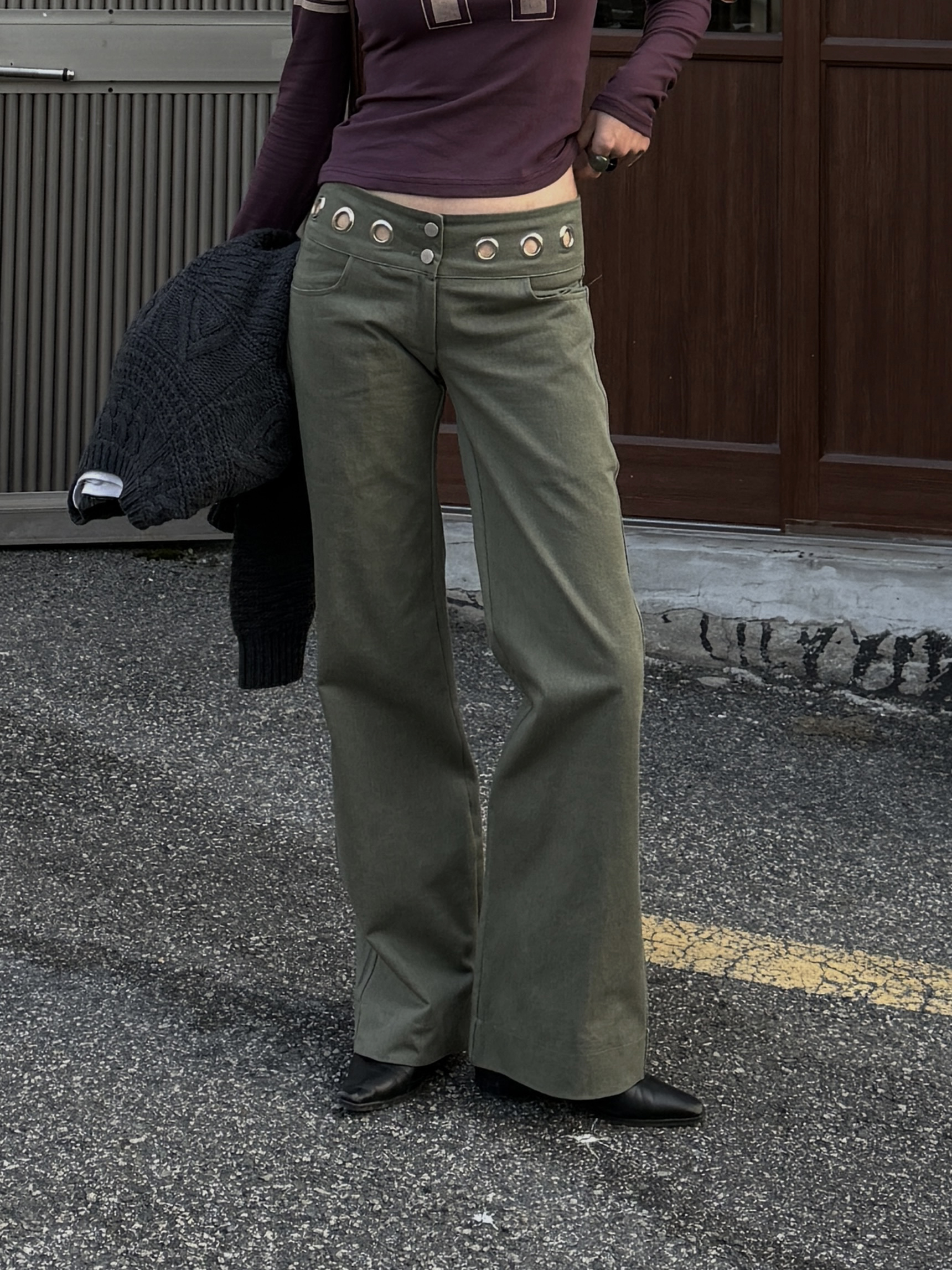그로멧 코튼 로우라이즈 팬츠