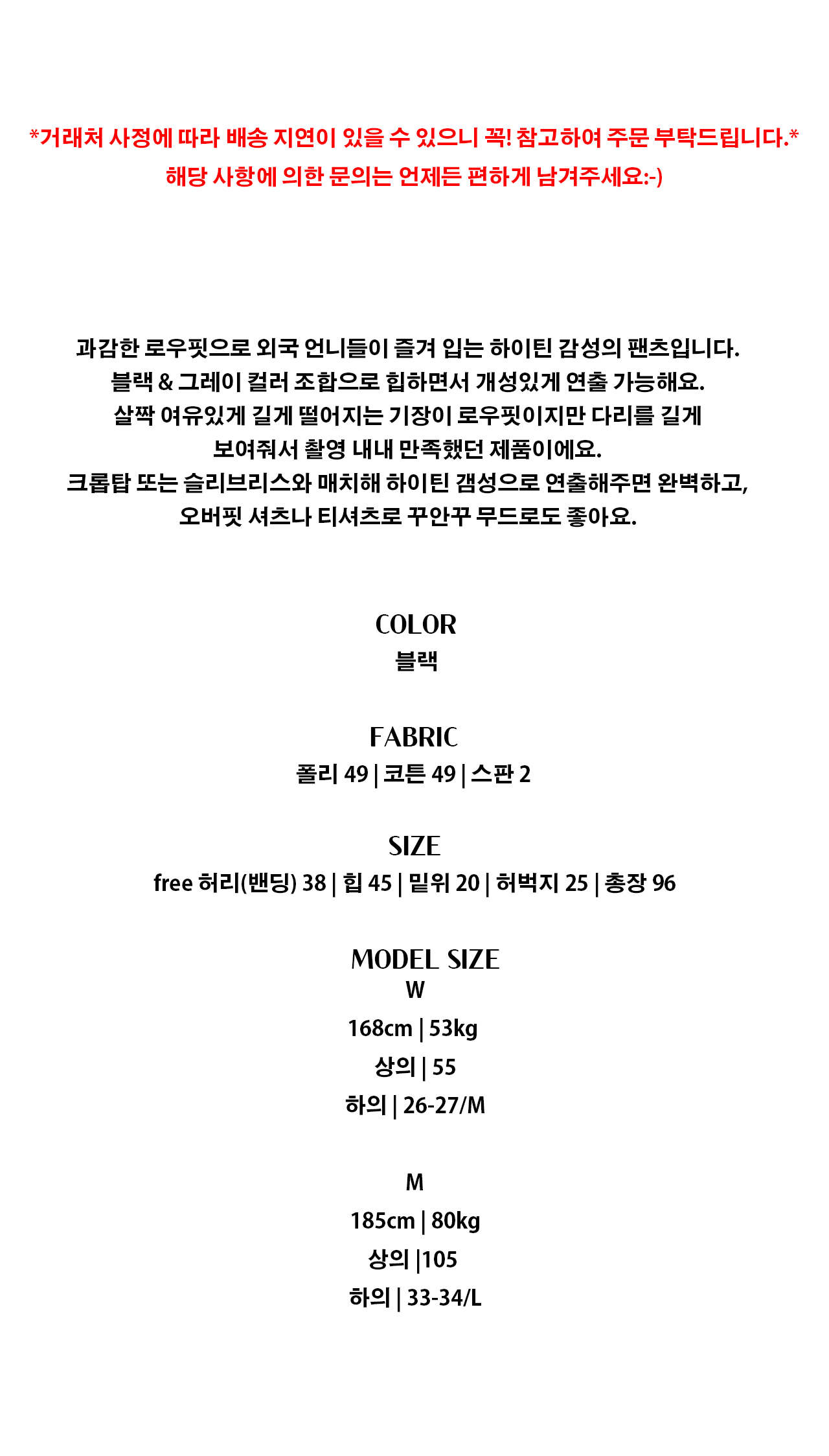 - 1:1오더 시스템으로 재고를 쌓아두지 않고 판매하고 있어 당일 배송은 불가능합니다.