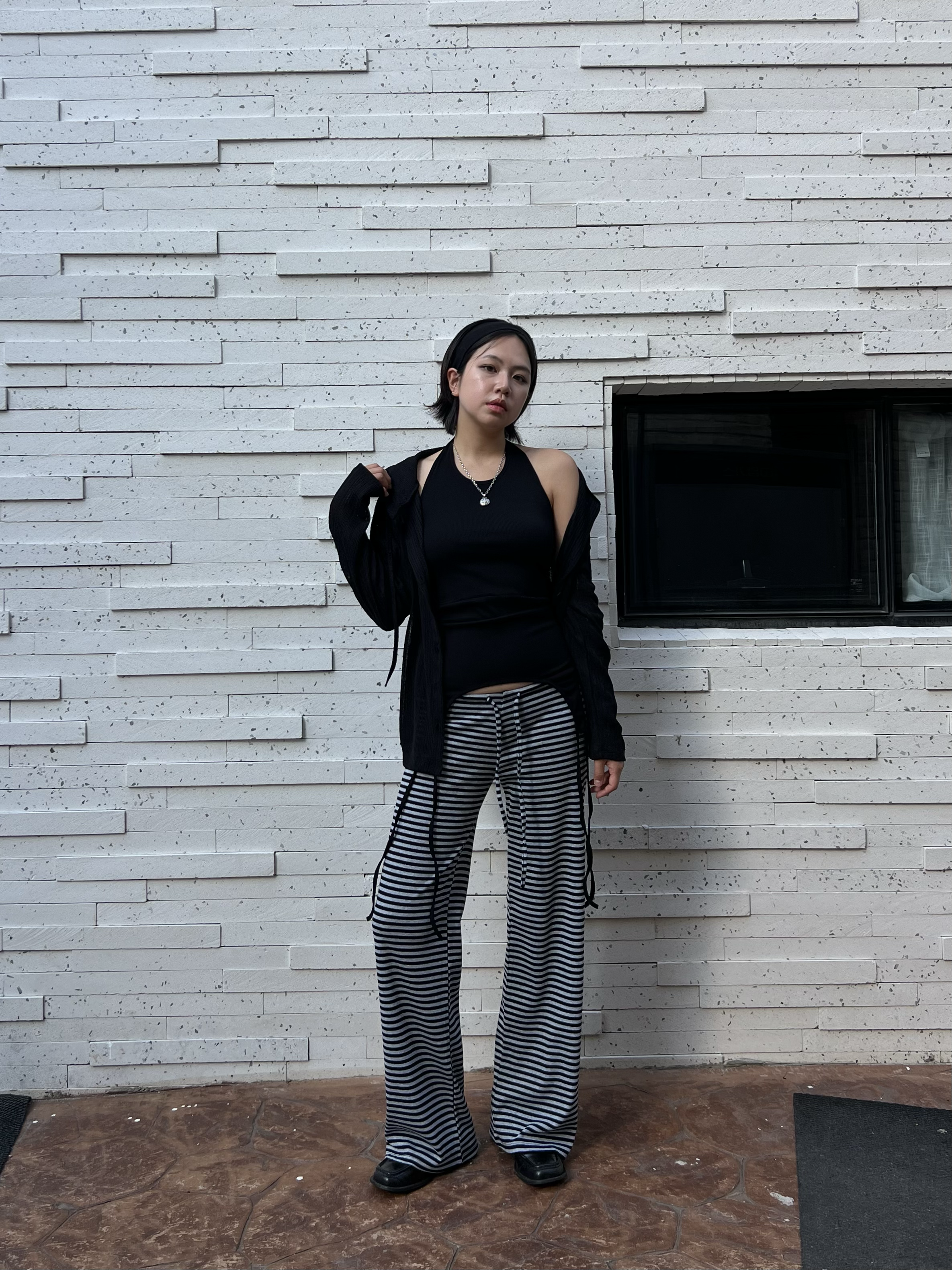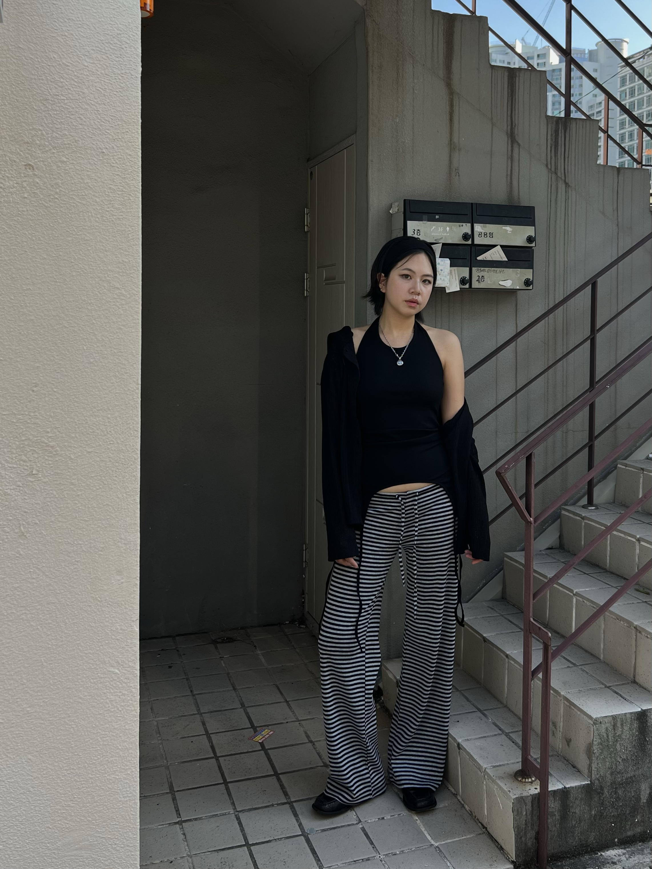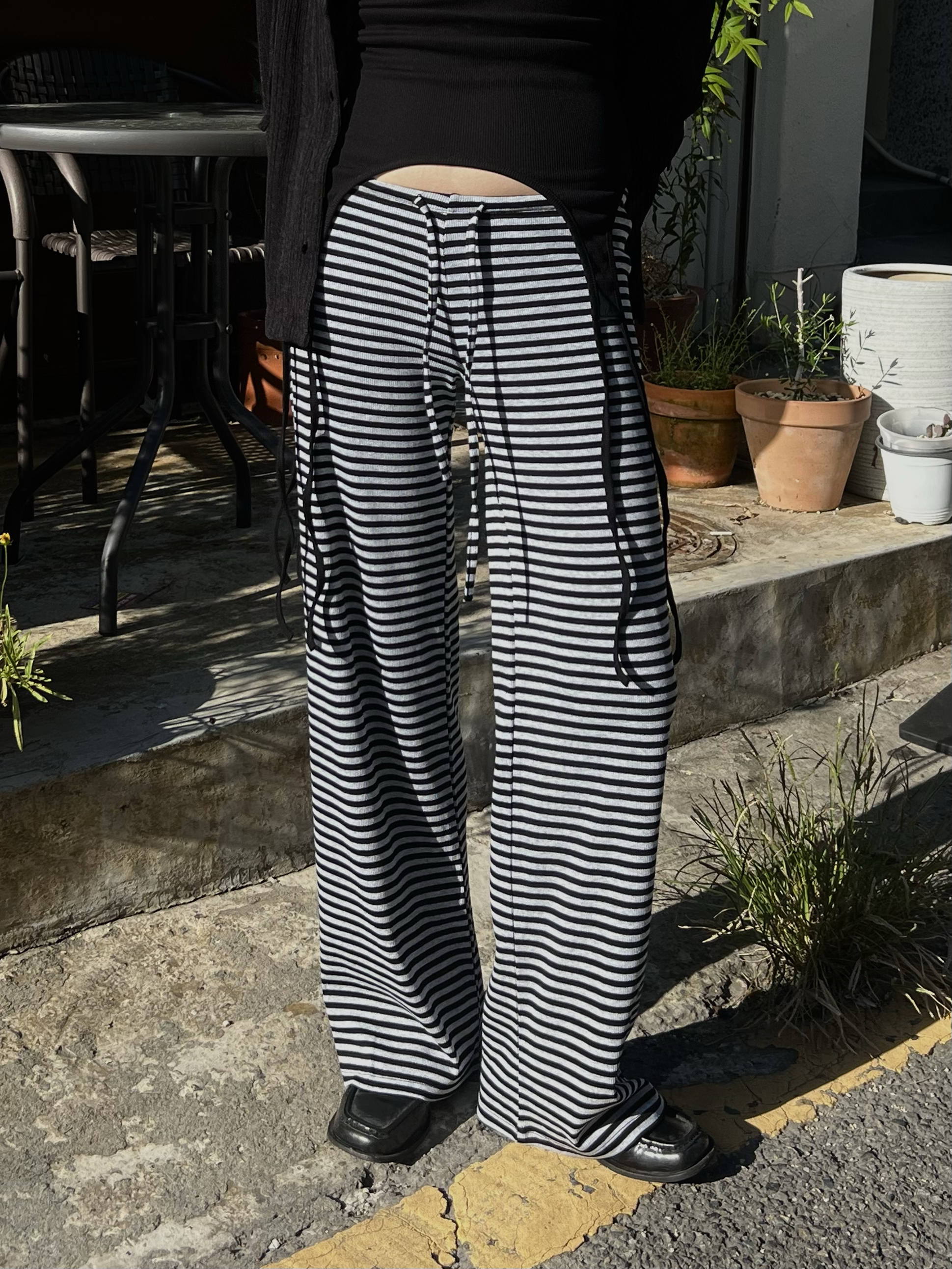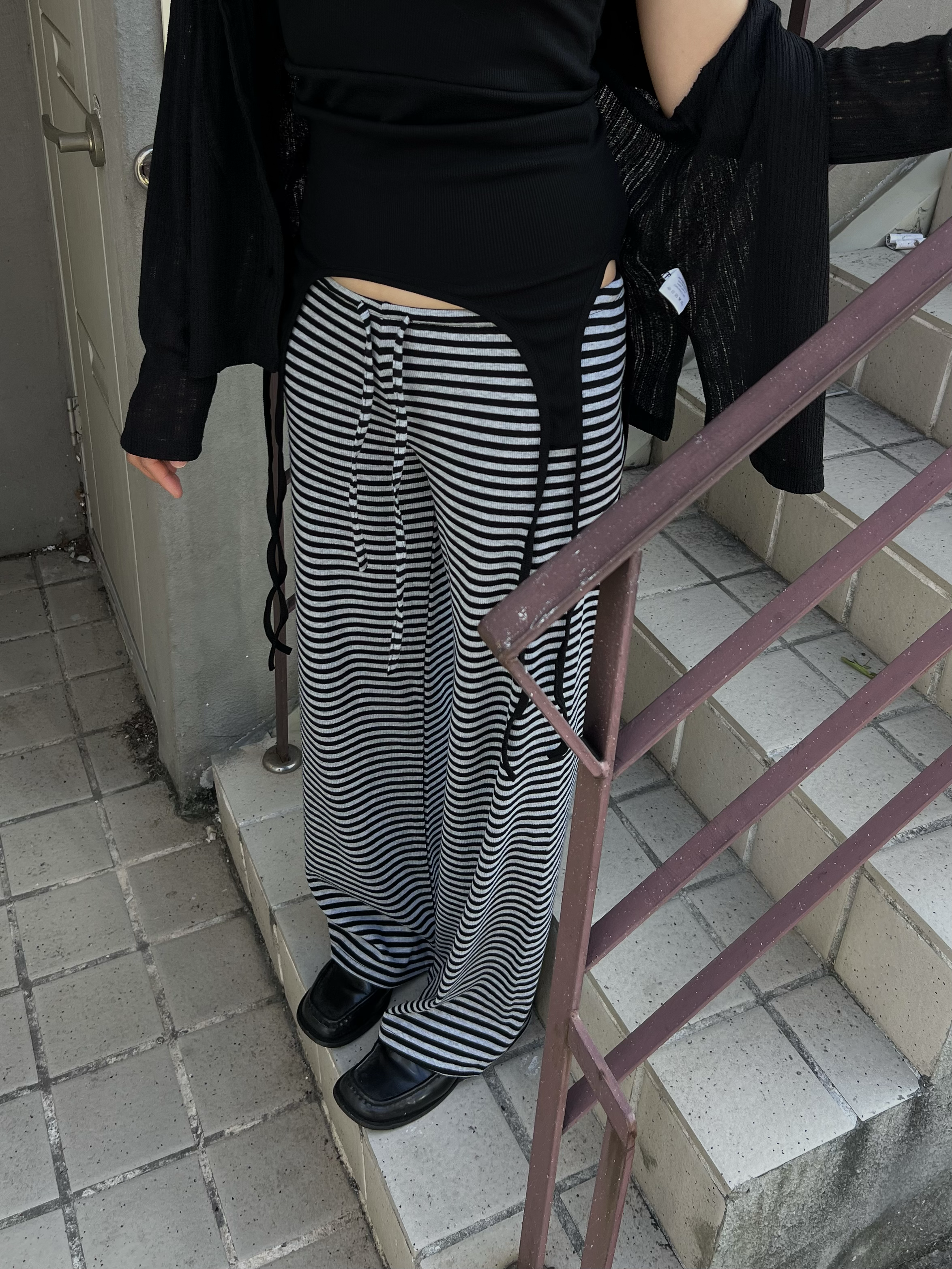 스트라이프 로우라이즈 팬츠