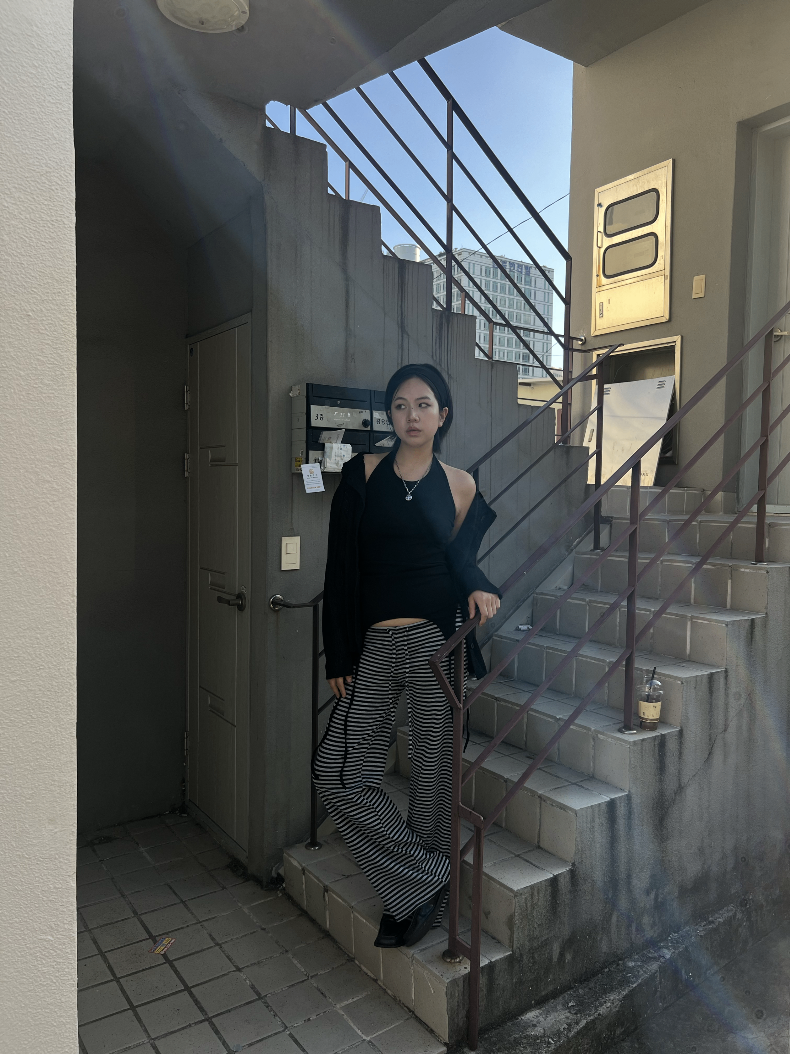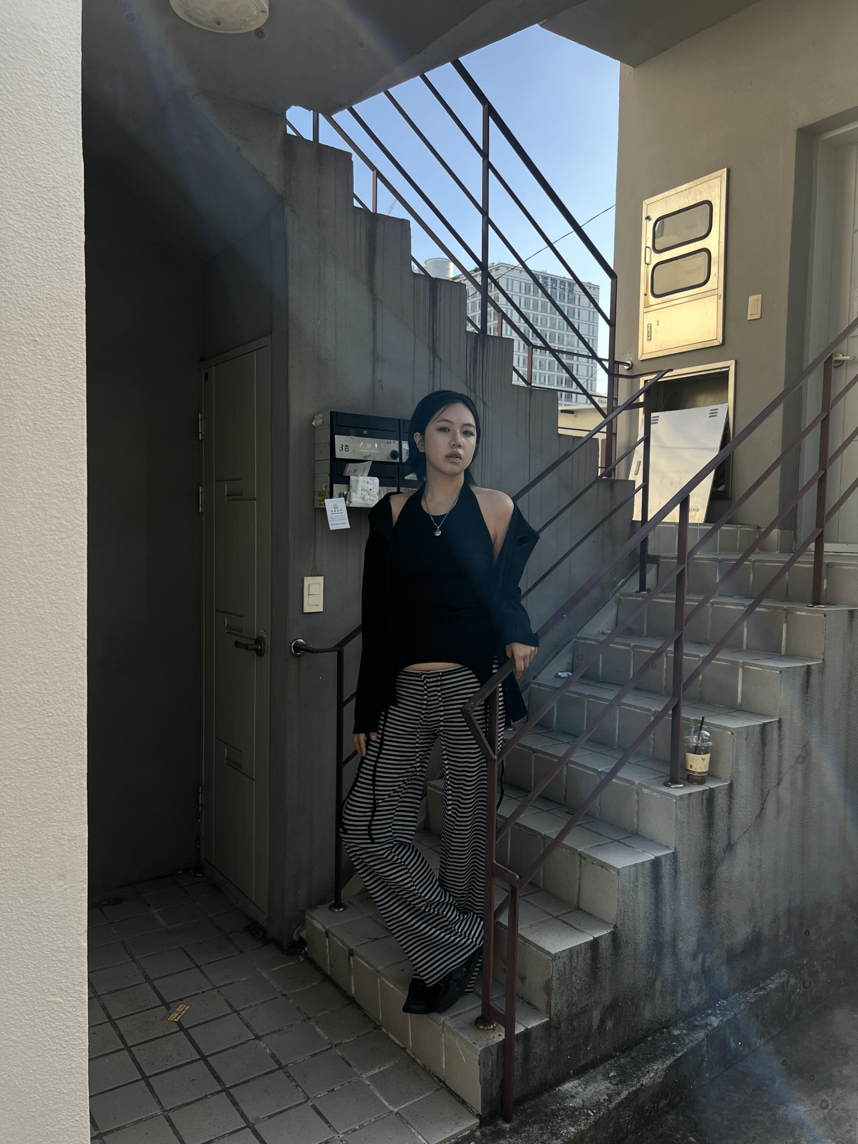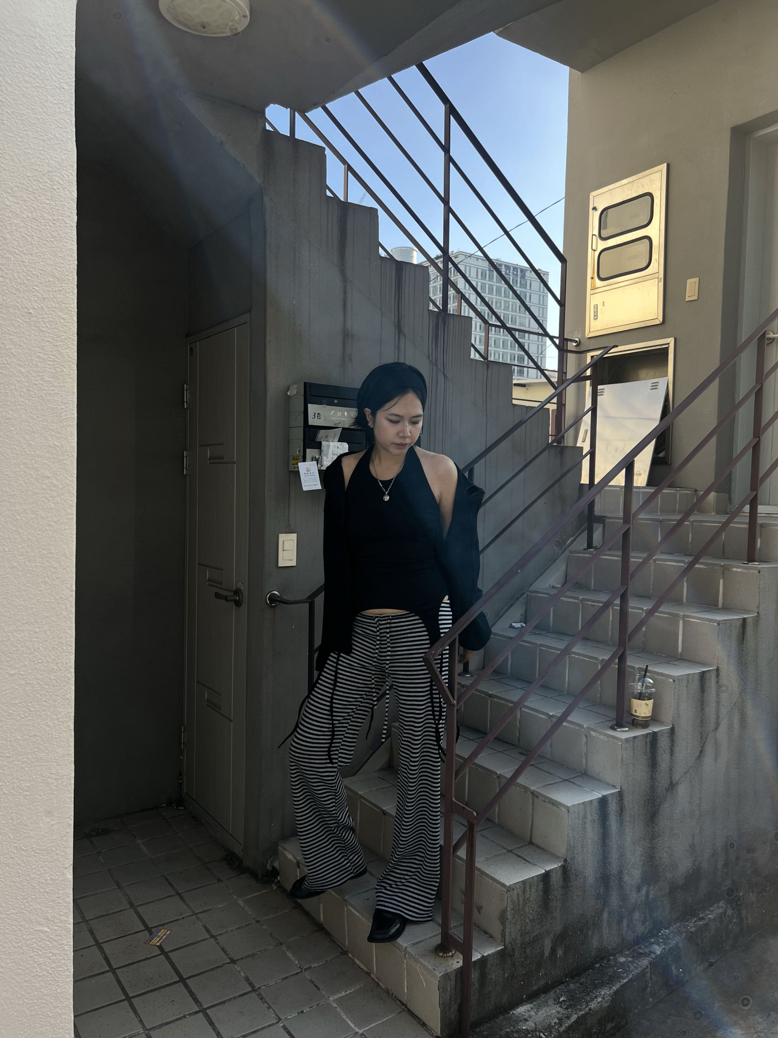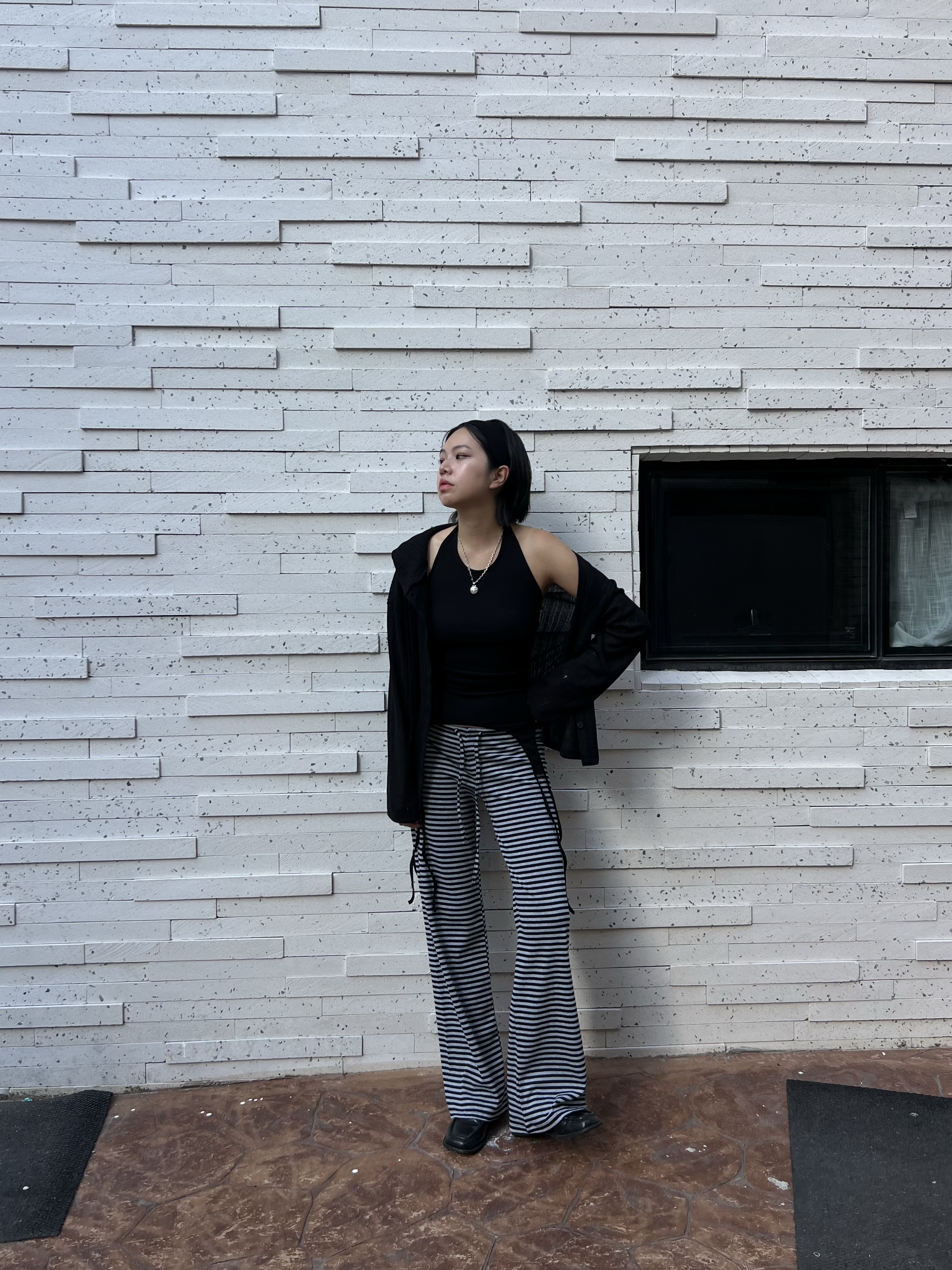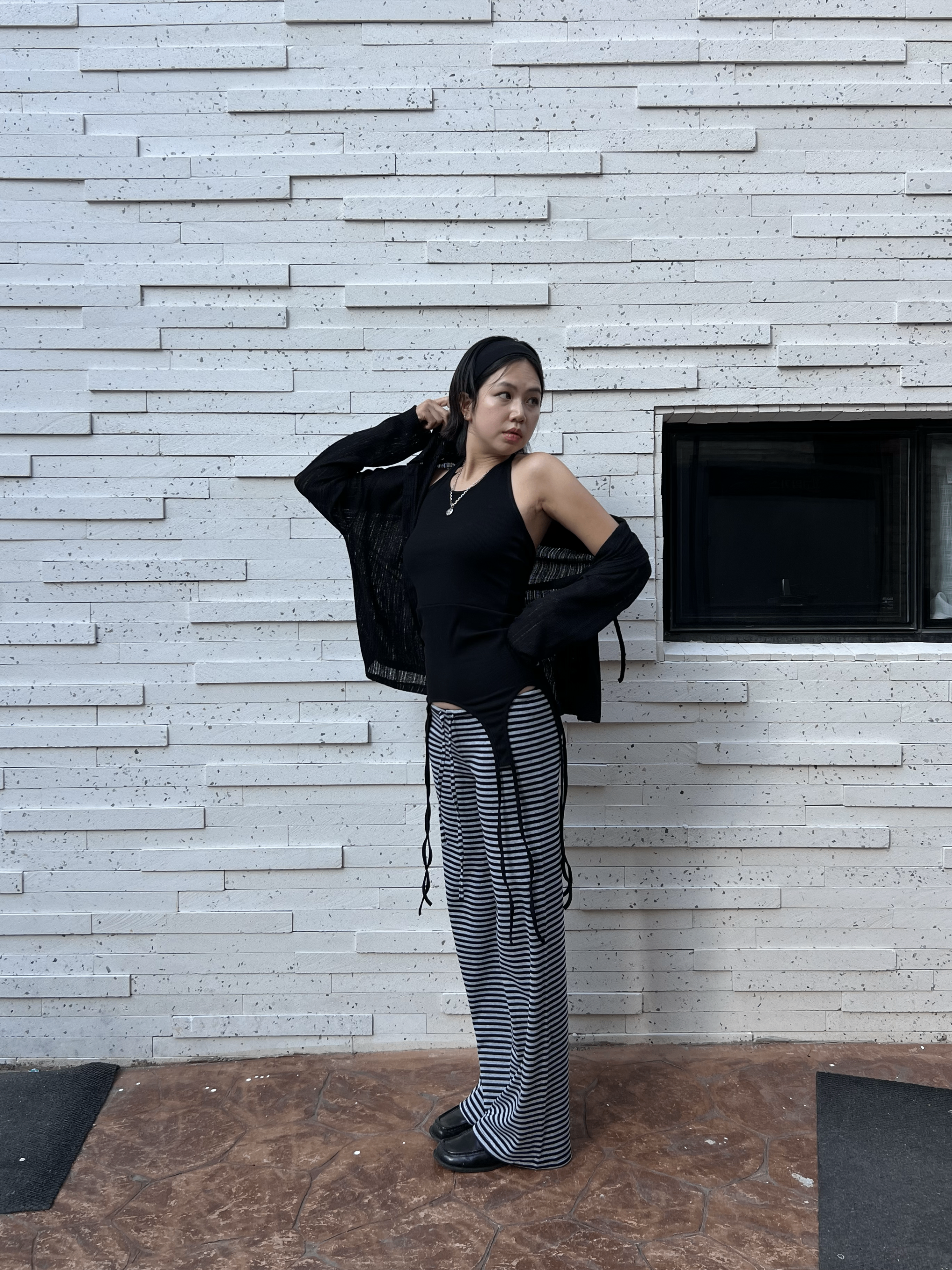 스트라이프 로우라이즈 팬츠