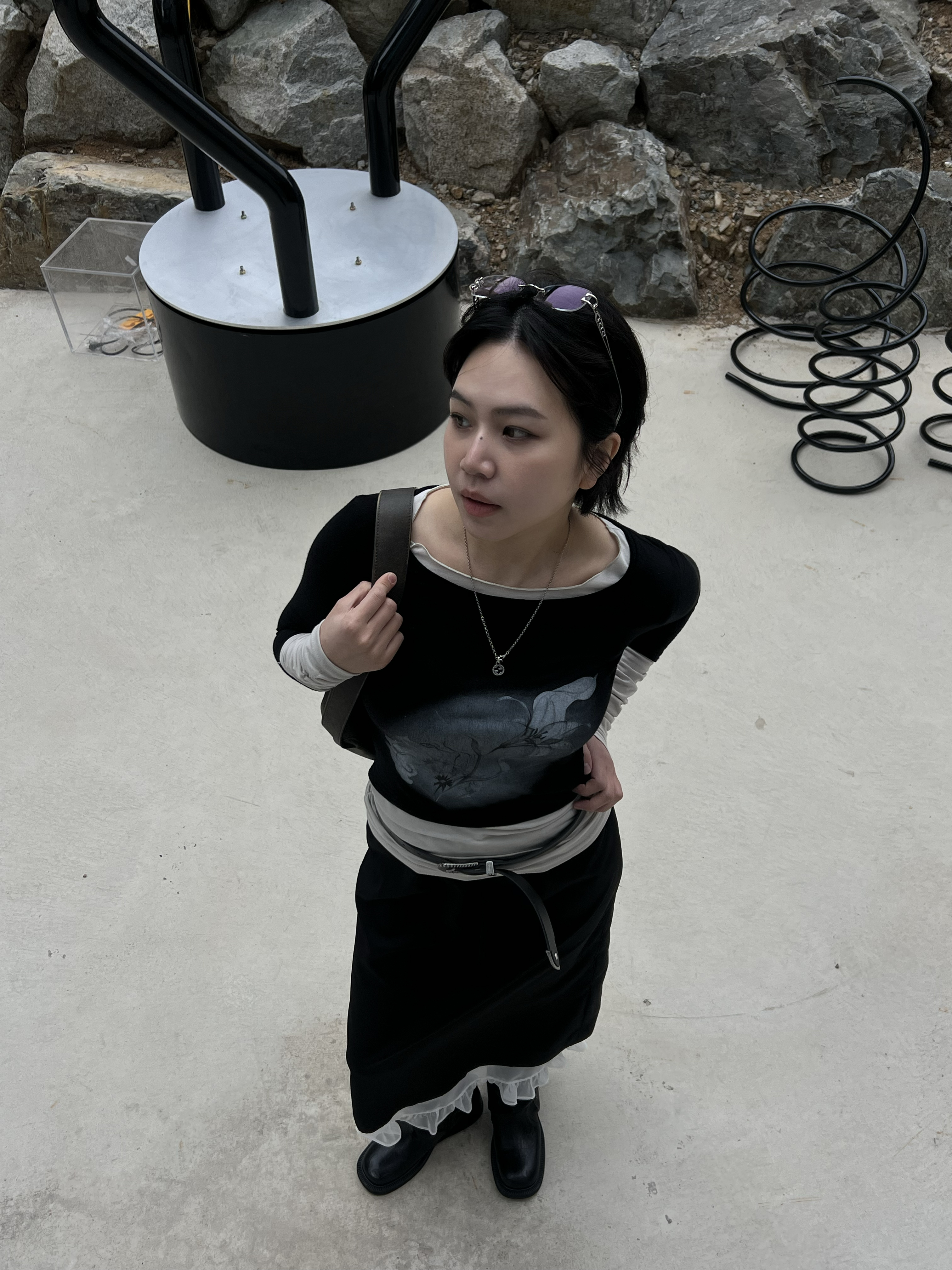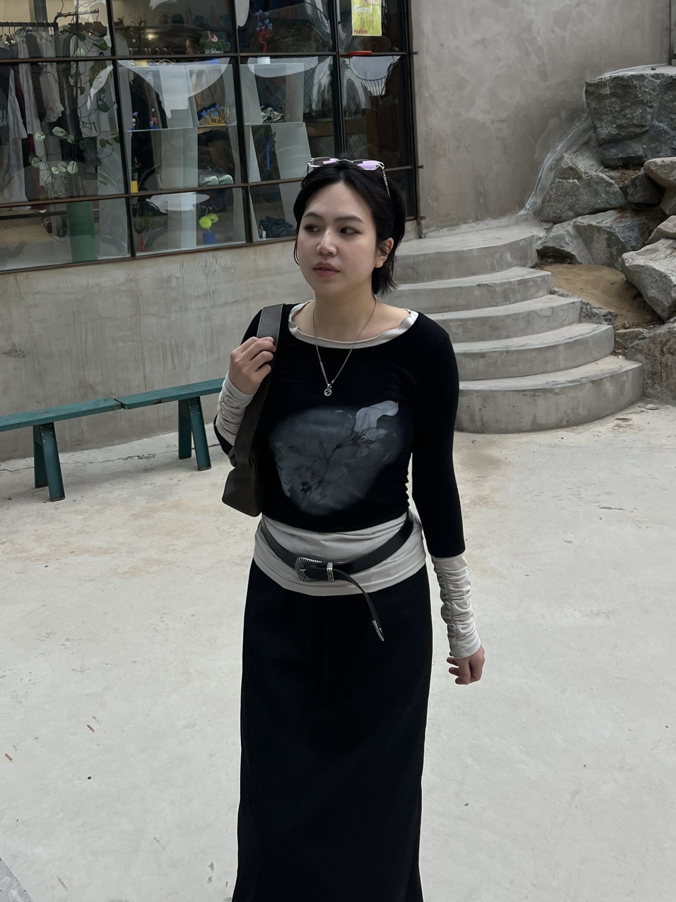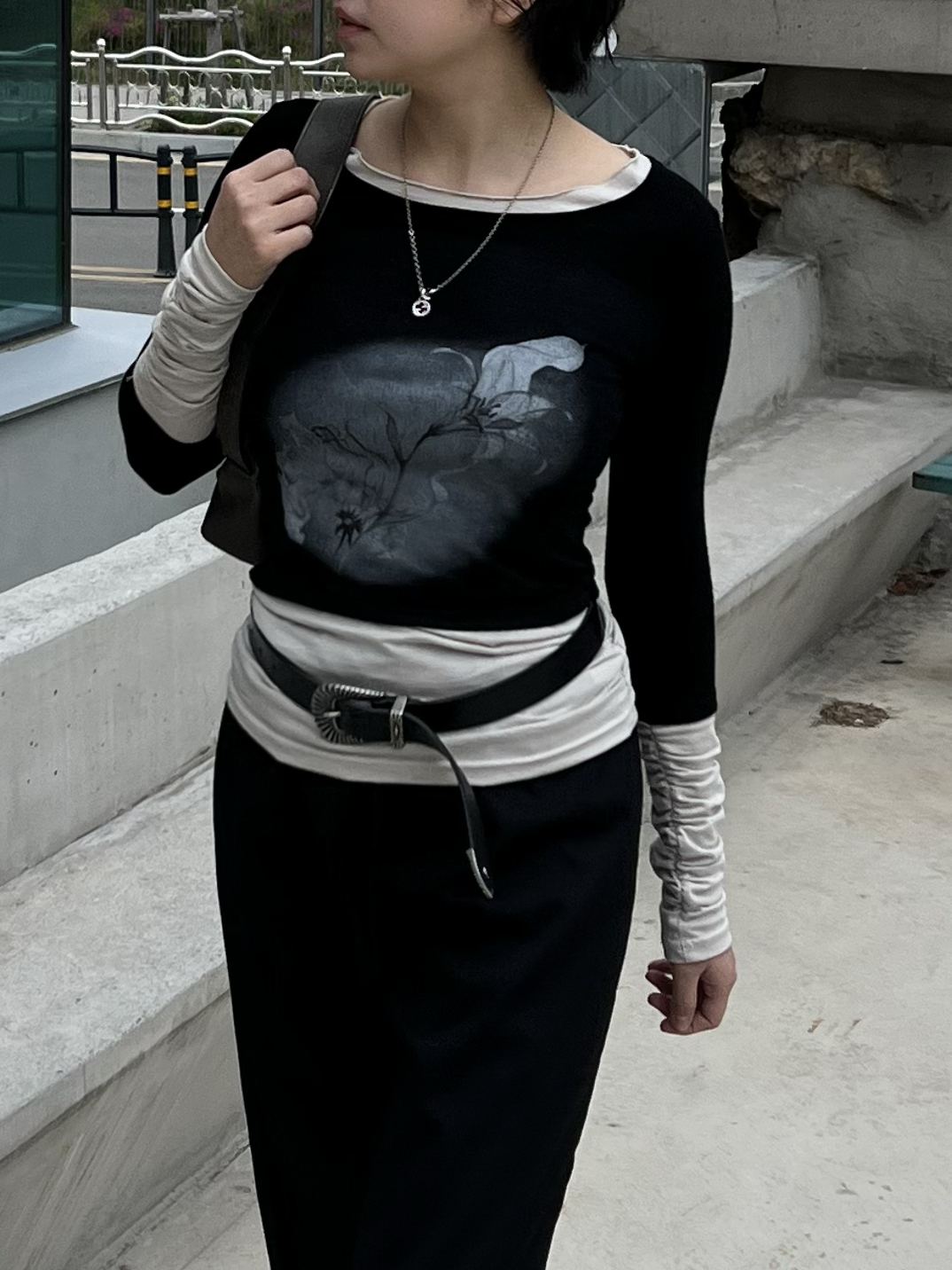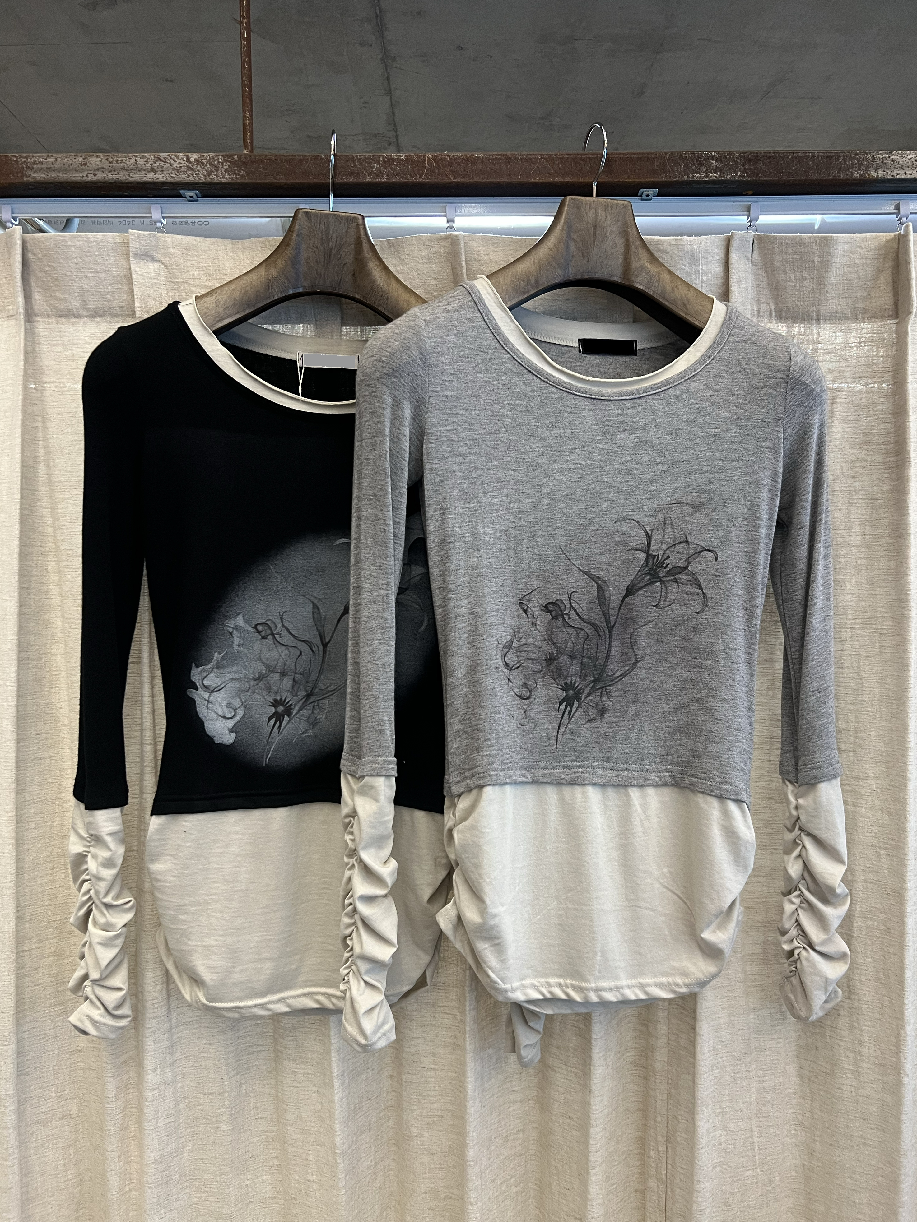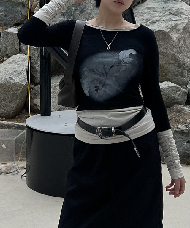 셔링 레이어드 배색 티셔츠