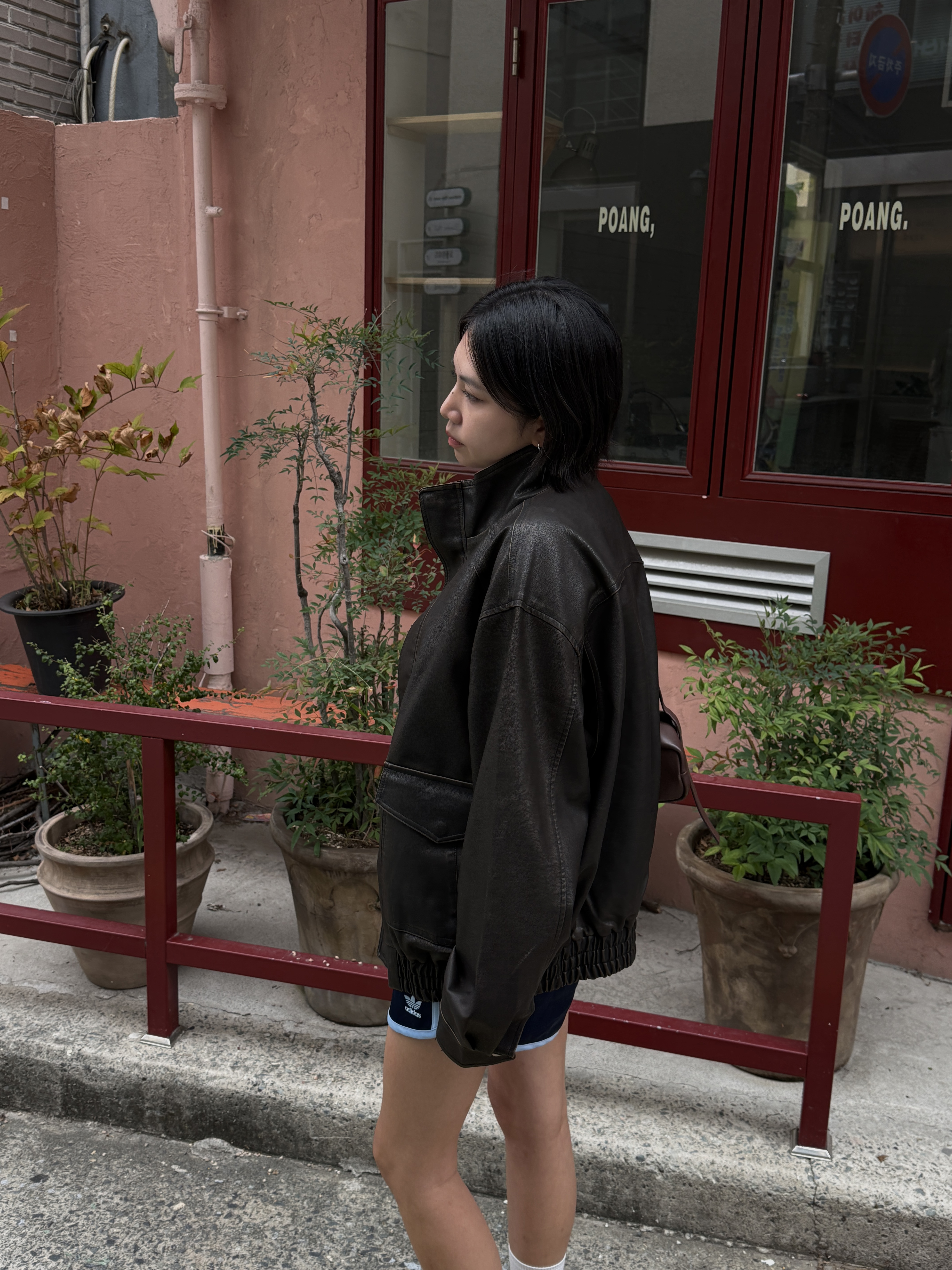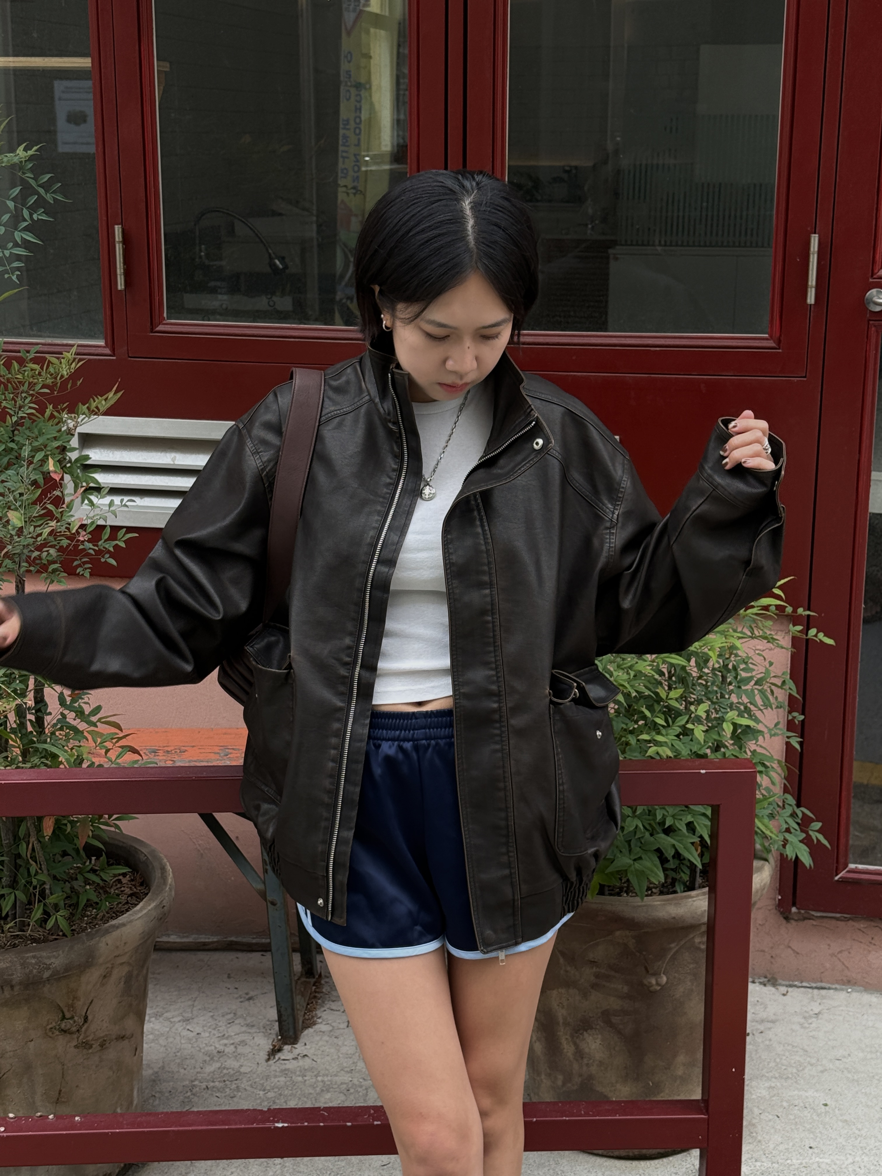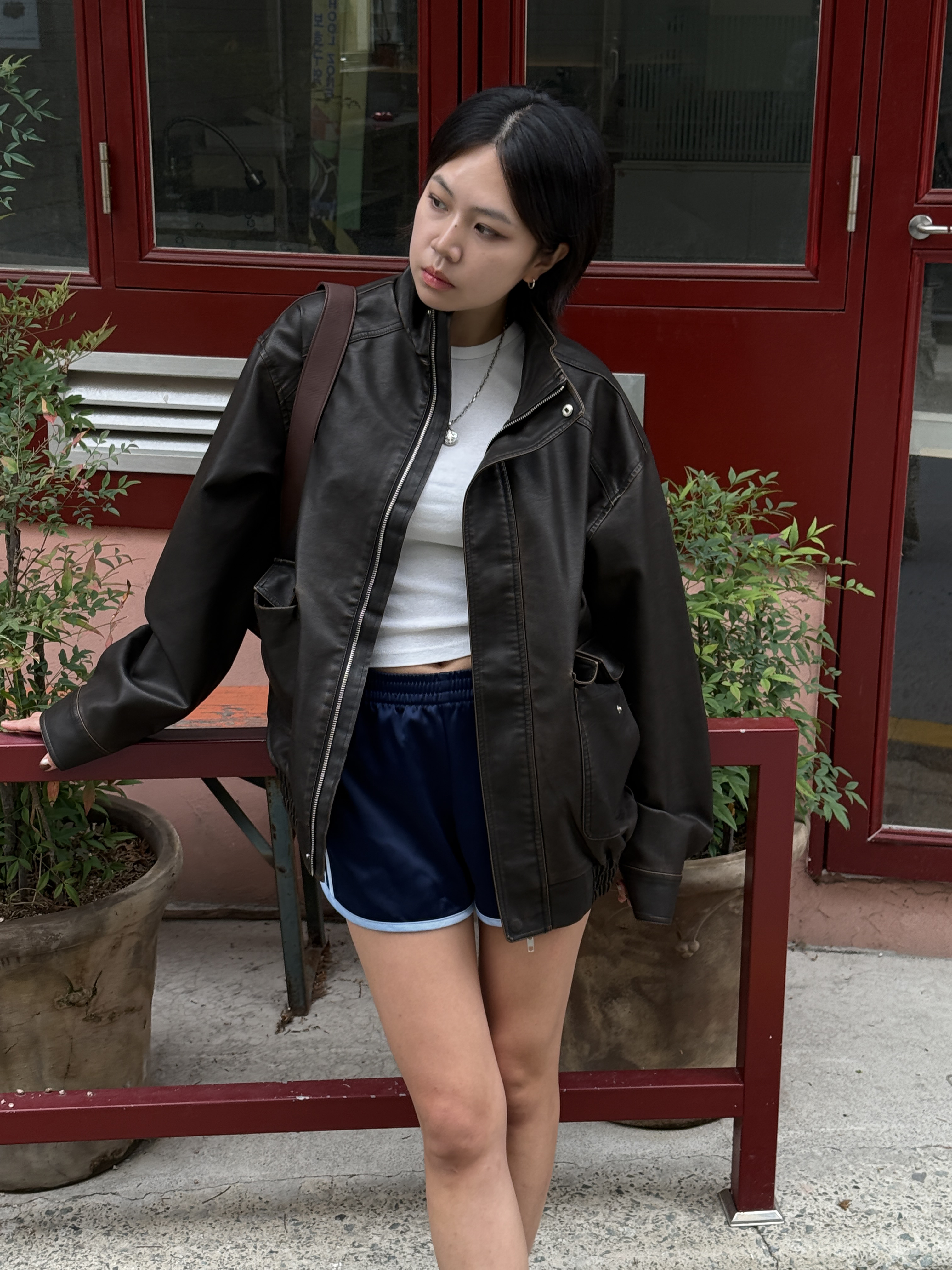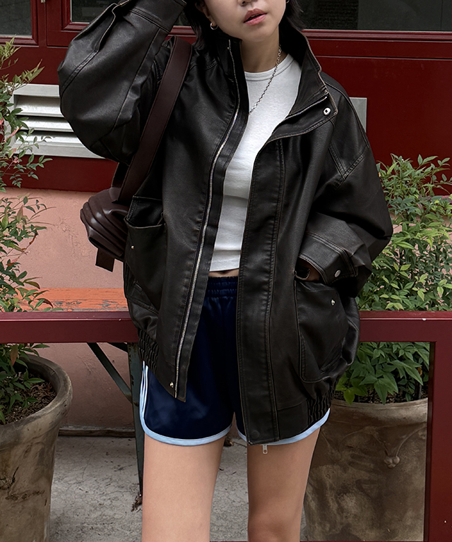 하이넥 스냅 레더자켓