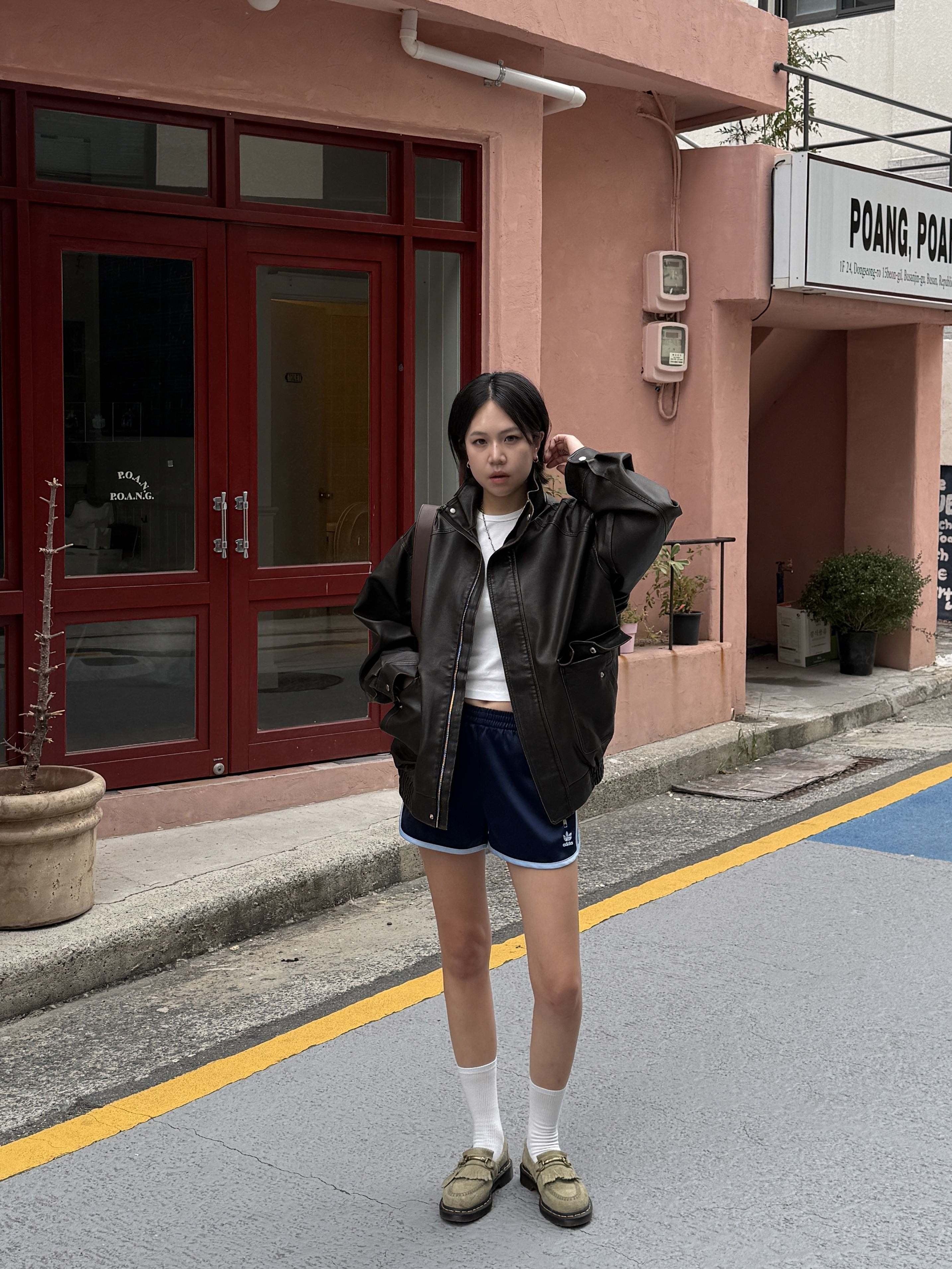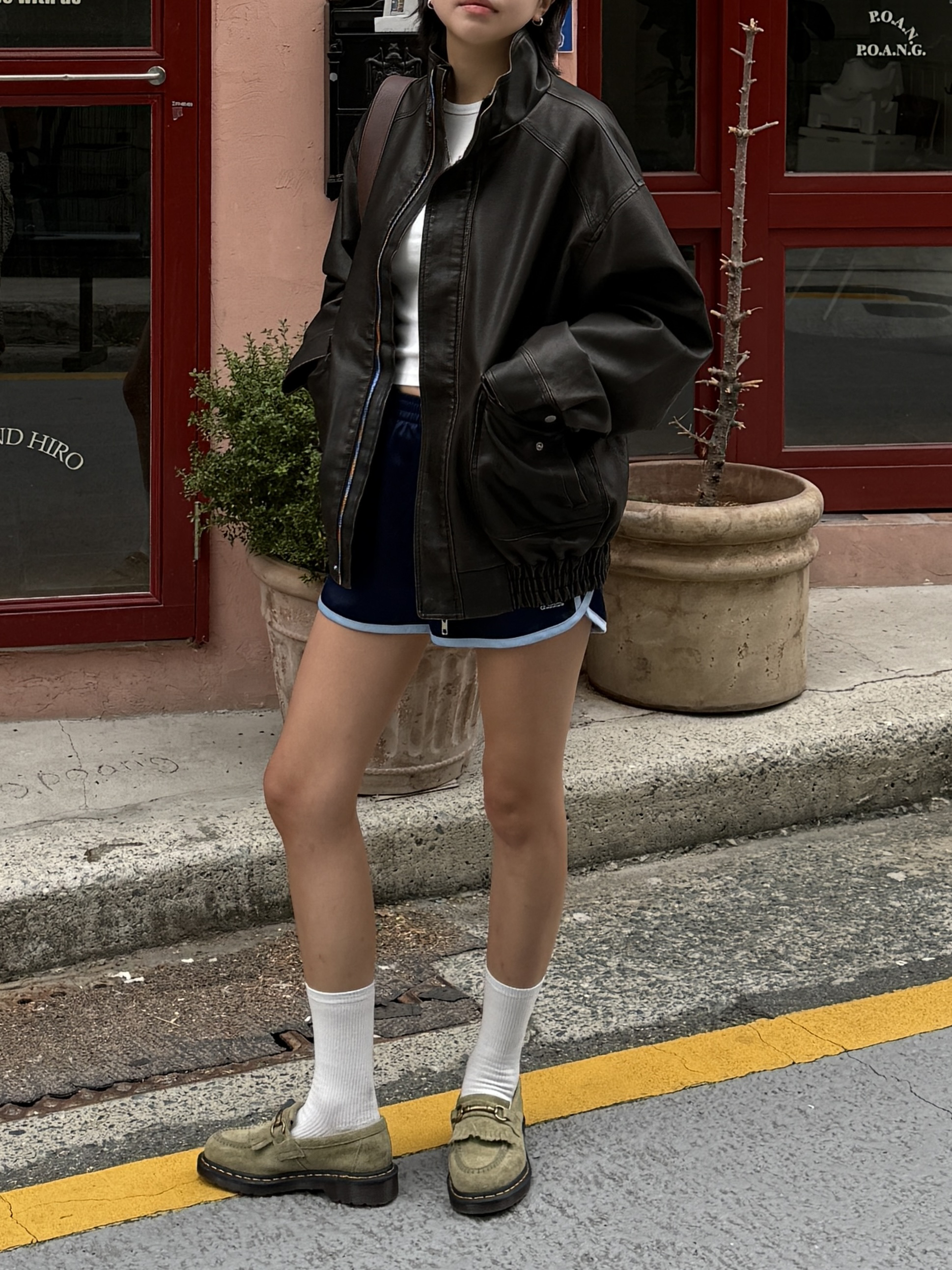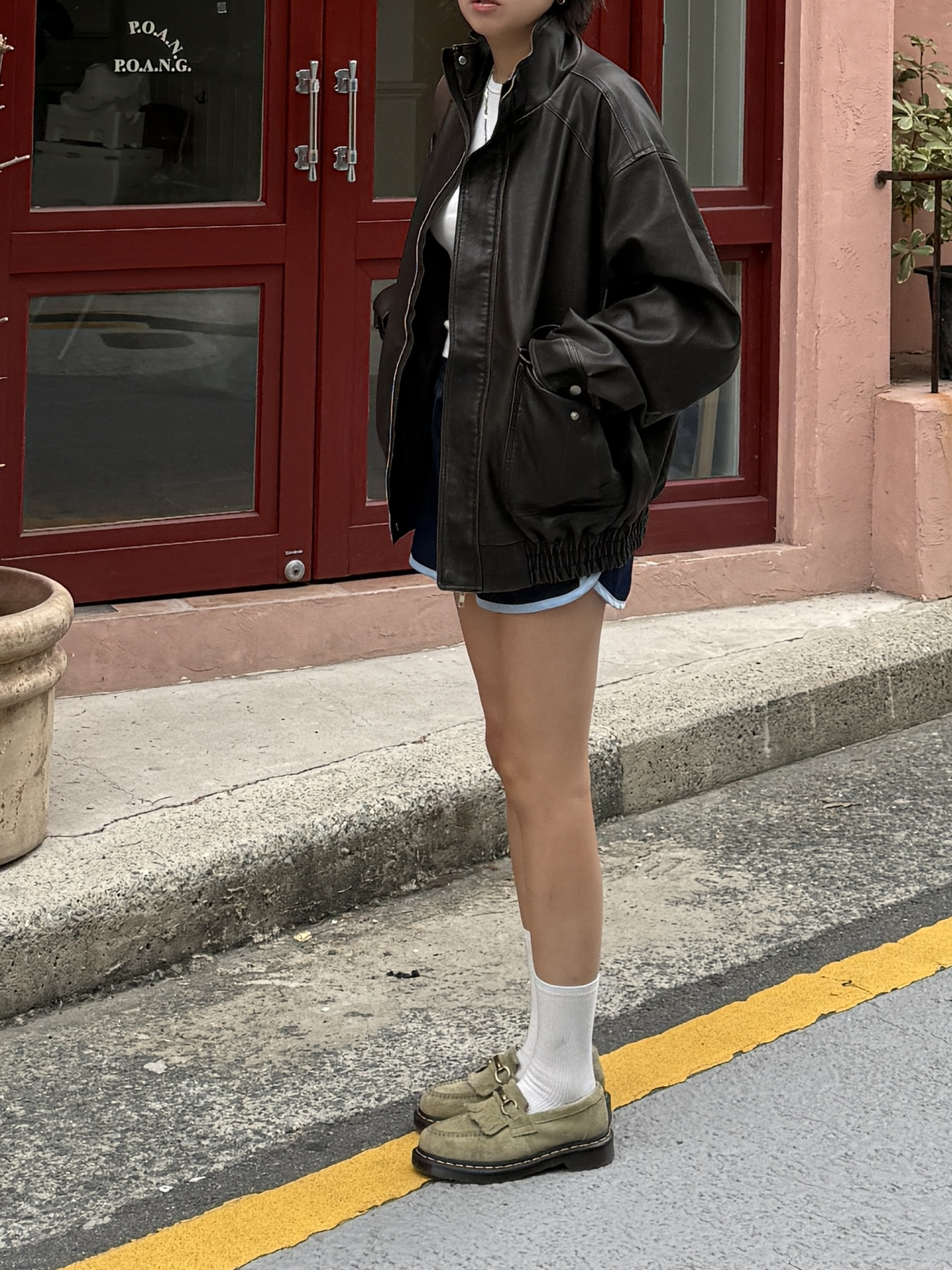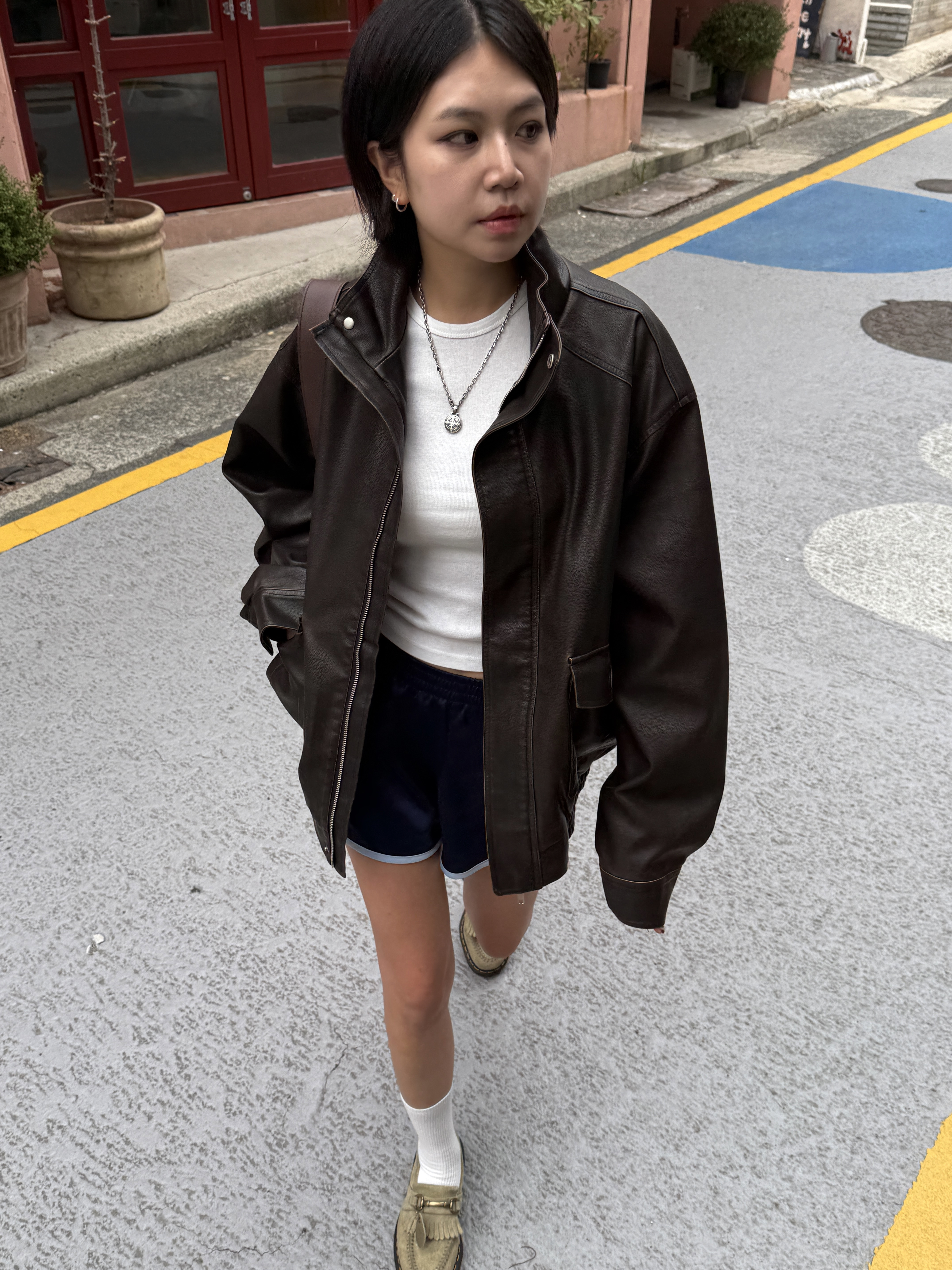하이넥 스냅 레더자켓