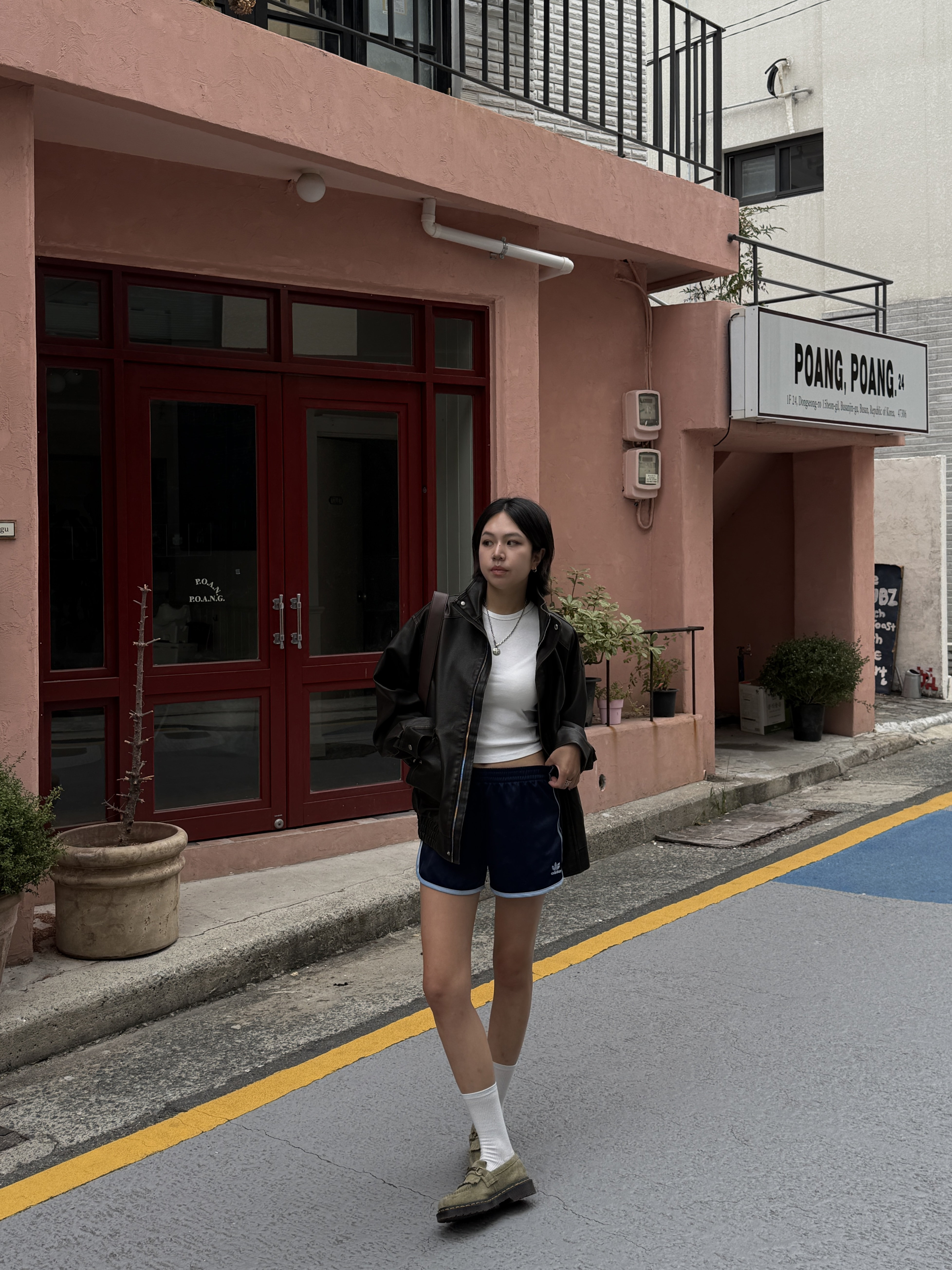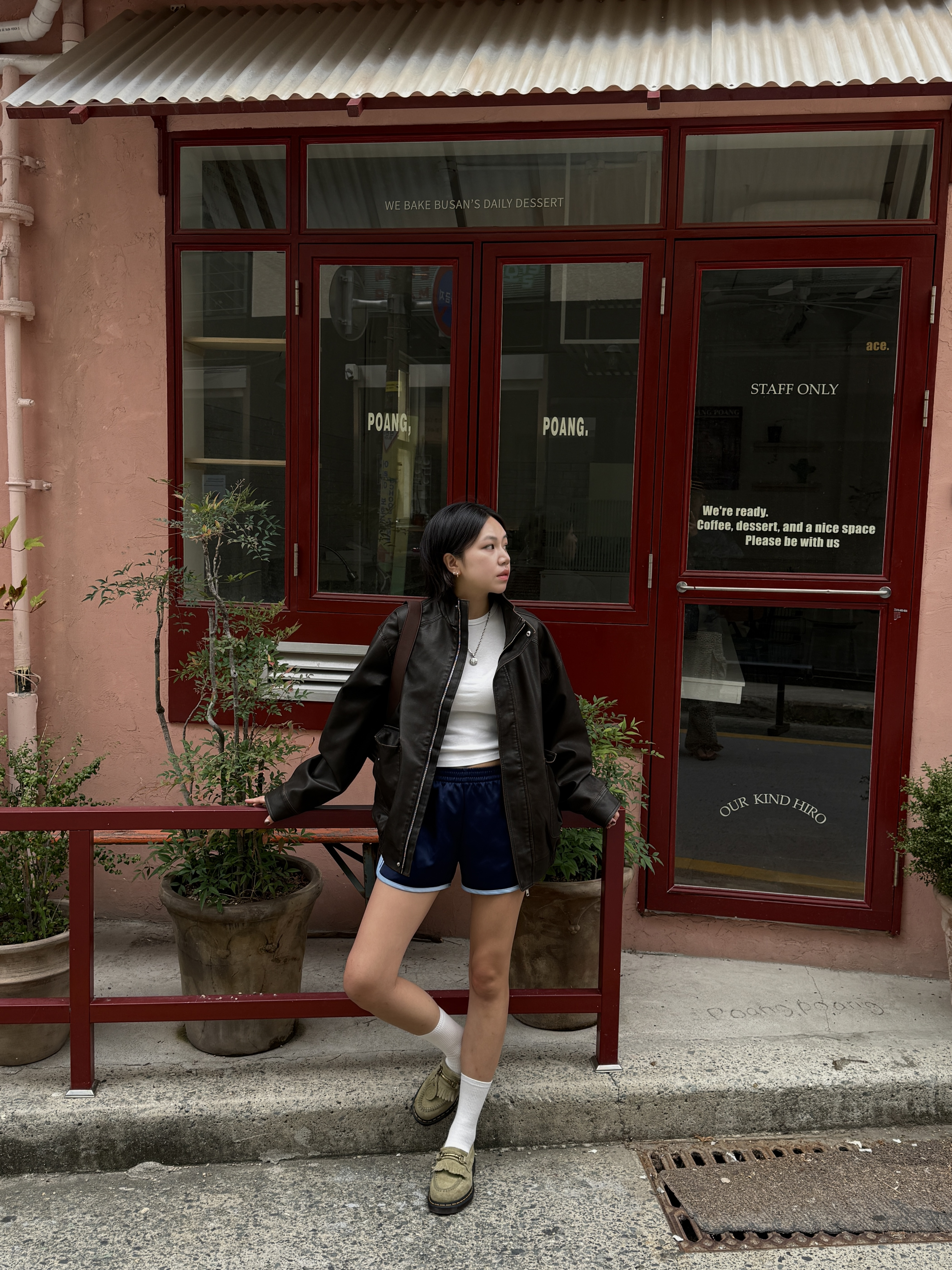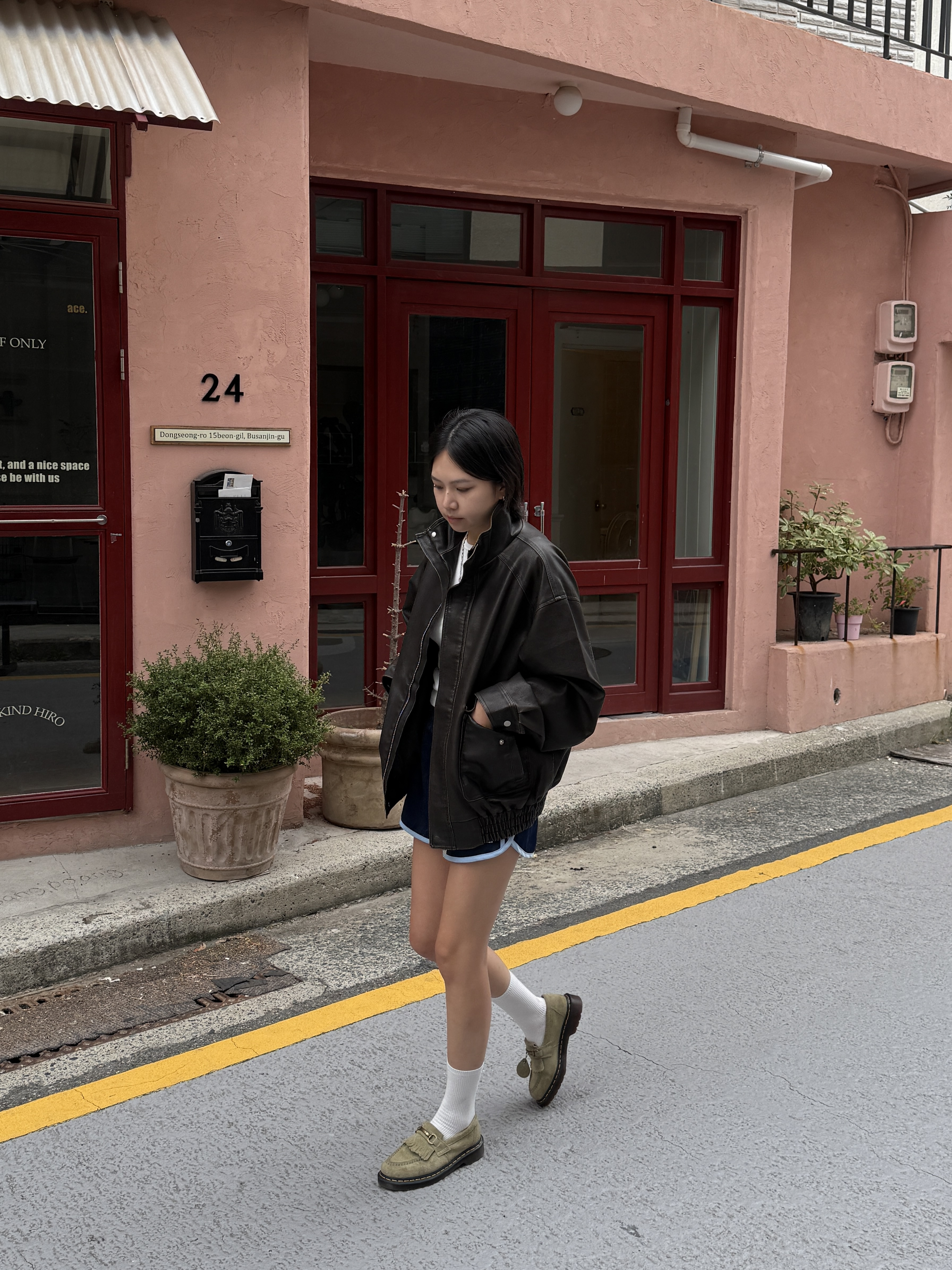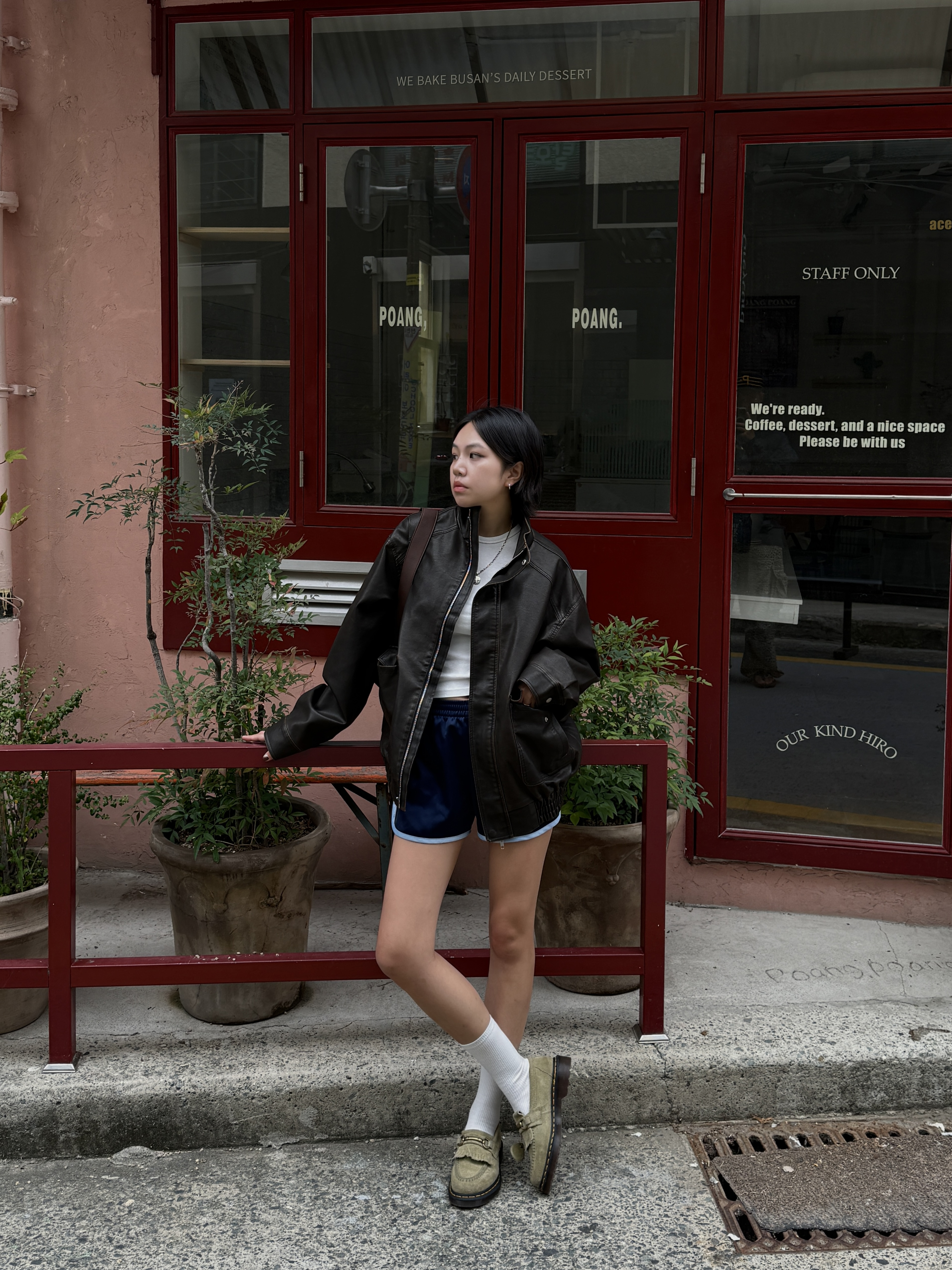 하이넥 스냅 레더자켓
